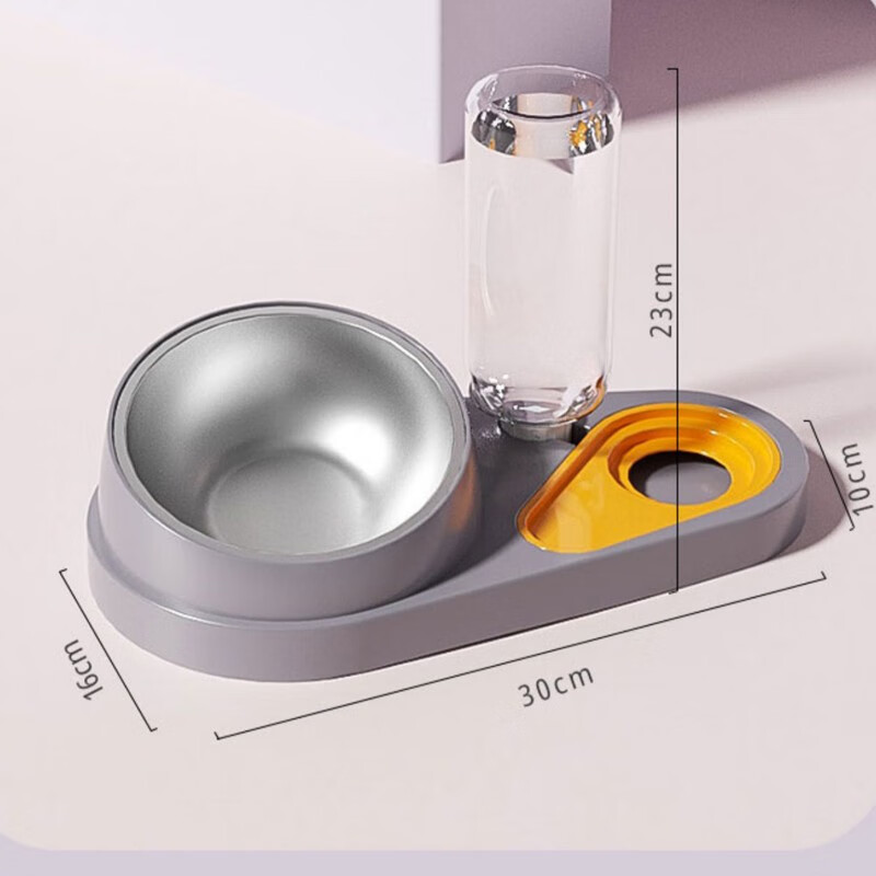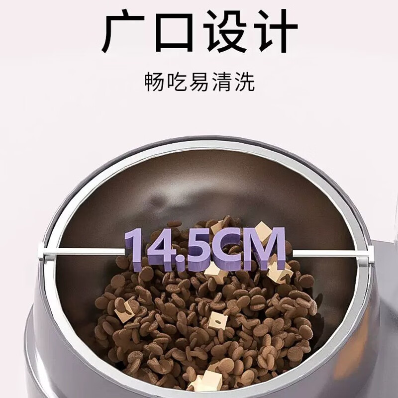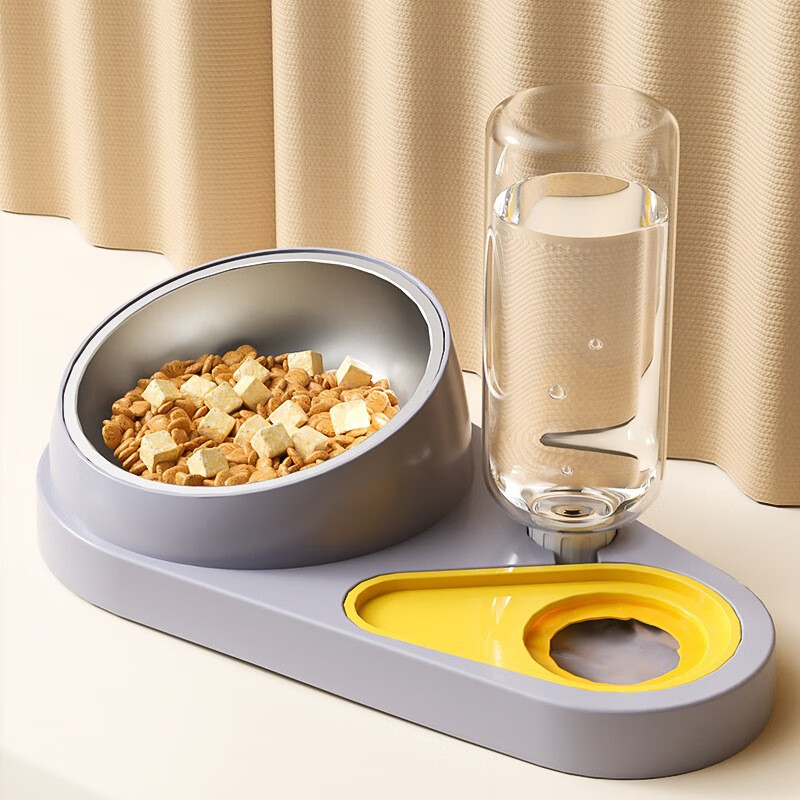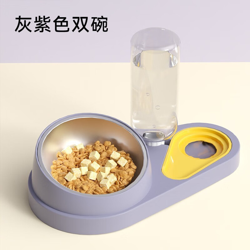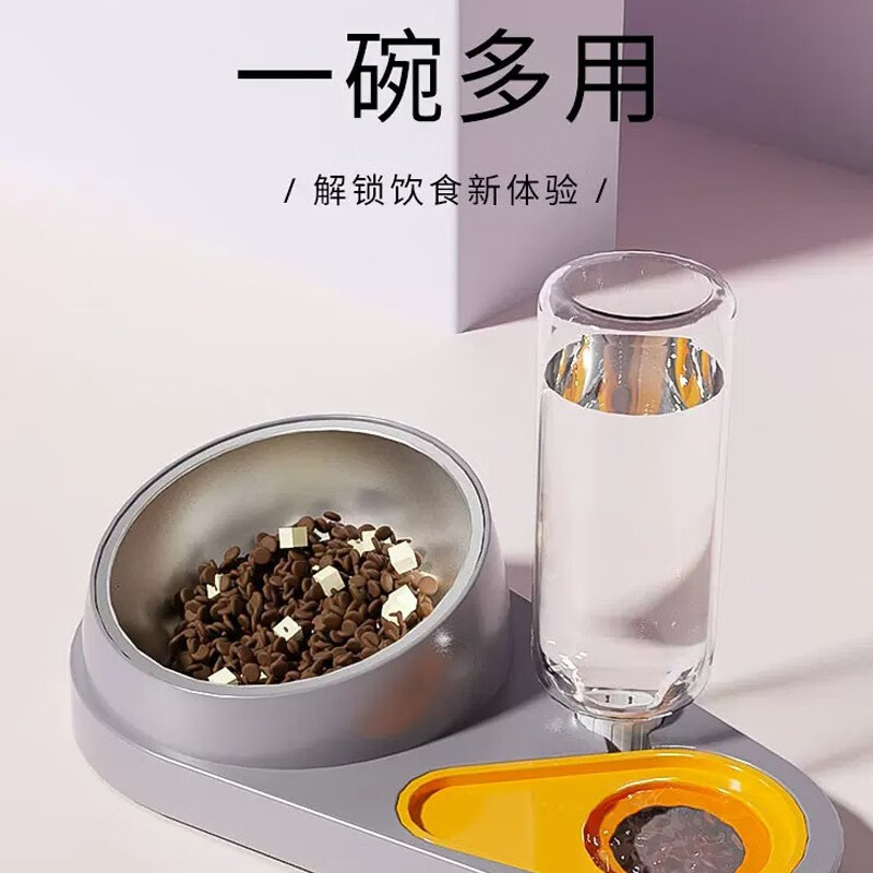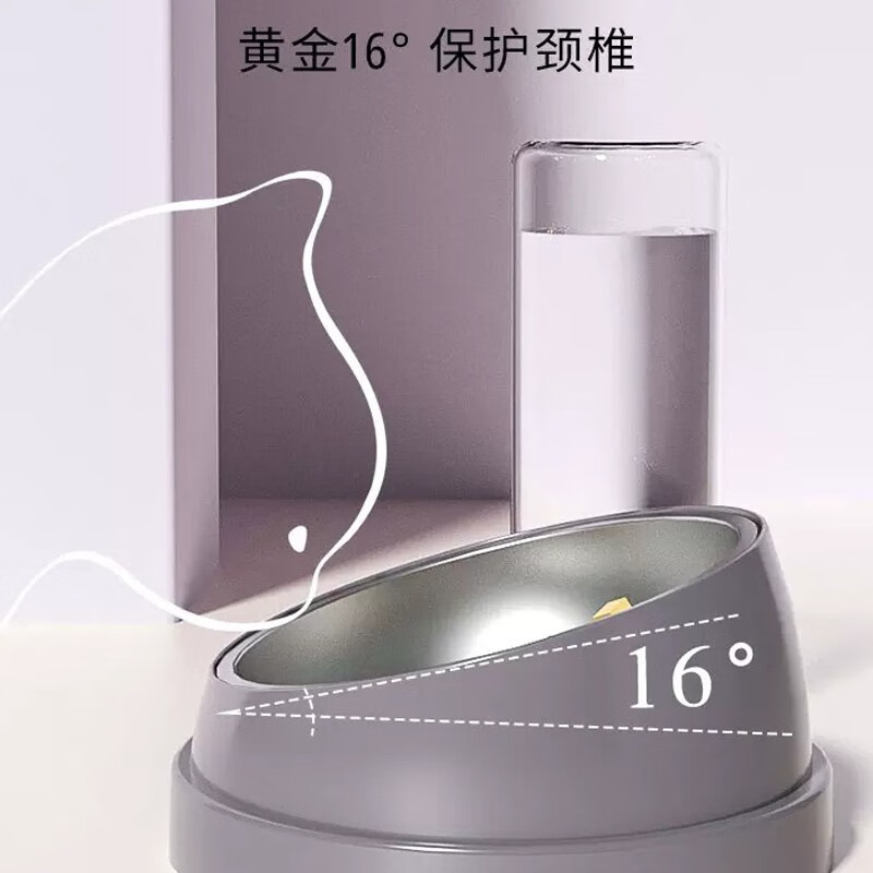 瑜品佳 宠物自动饮水机器 猫狗碗不易打翻黑下巴斜口不锈钢保护颈椎食盆 自动饮水器猫碗【灰色】