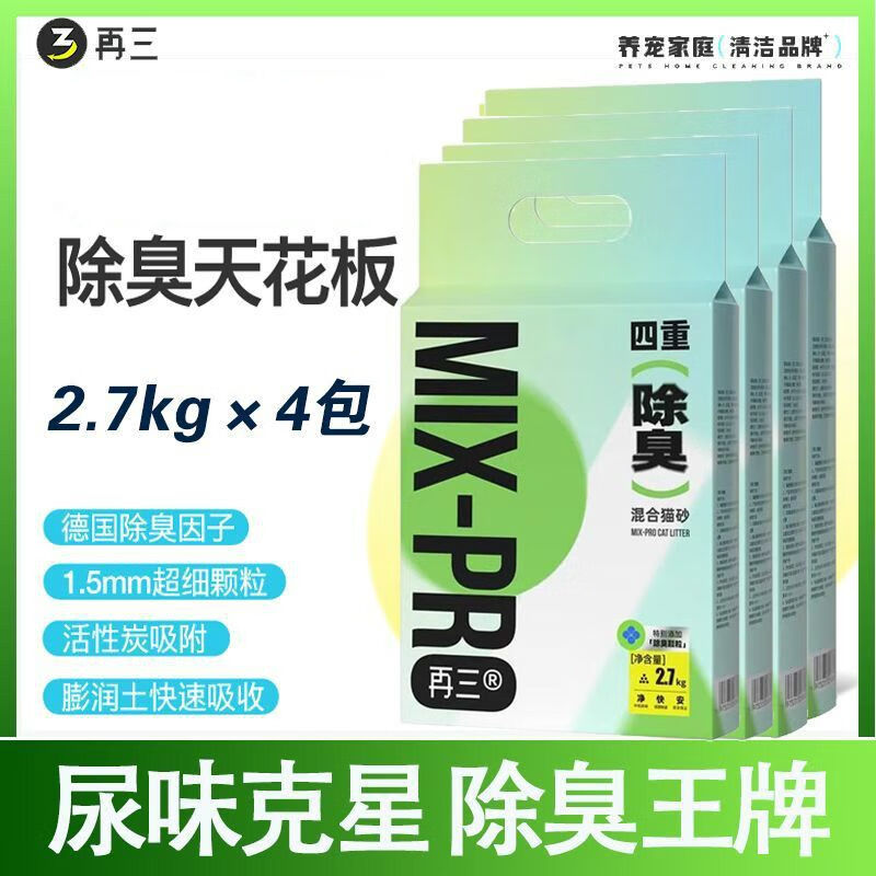 再三四重混合猫砂豆腐猫砂膨润土无尘可冲厕所2.7kg/包 再三四重混合猫砂2.7kg*4