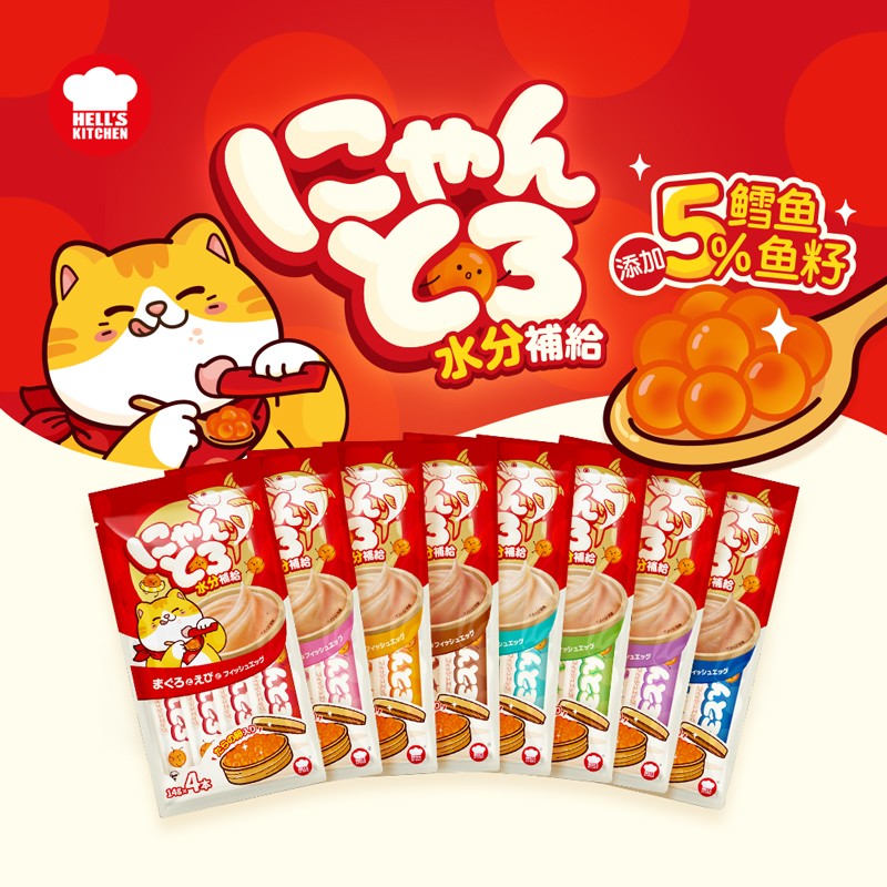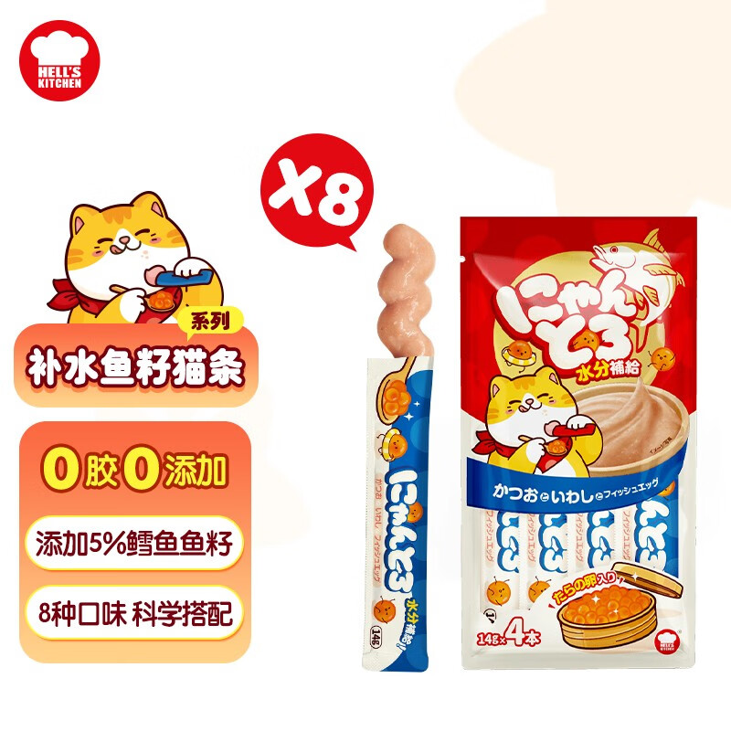 地狱厨房(Hell's Kitchen)猫条猫零食噜噜条补充营养鱼籽猫条湿粮补水猫咪营养罐头 鲣鱼丁香鱼*8包(14g*32条) 单品