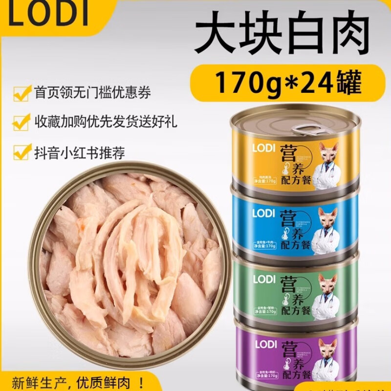 LODI洛迪猫罐头白肉增肥营养大块纯肉主食罐成幼猫多口味吃食补钙猫罐 【升级款】鸡肉170*12罐