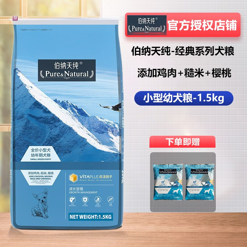 伯纳天纯狗粮 小型犬幼犬狗干粮 经典系列 低敏食材 泰迪博美比熊小型犬通用狗粮 小型犬幼犬 1.5KG(经典系列 低敏食材)