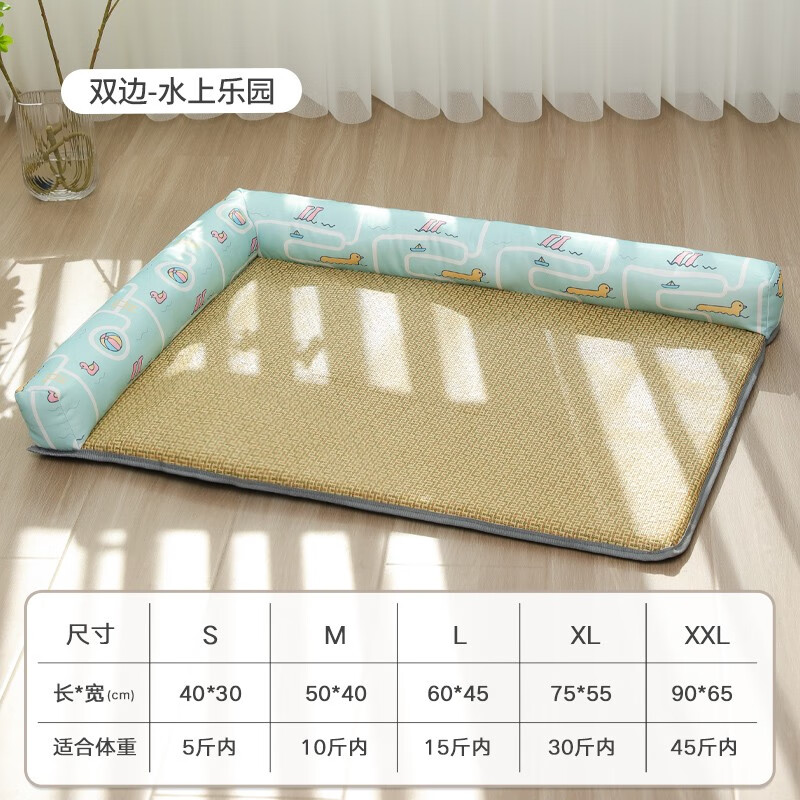 KimPets狗窝夏天凉席垫狗床猫咪中小型犬睡垫可拆洗冰垫地垫宠物垫子 【水上乐园】双边凉席窝 夏季款 L码【适合15斤内宠物】