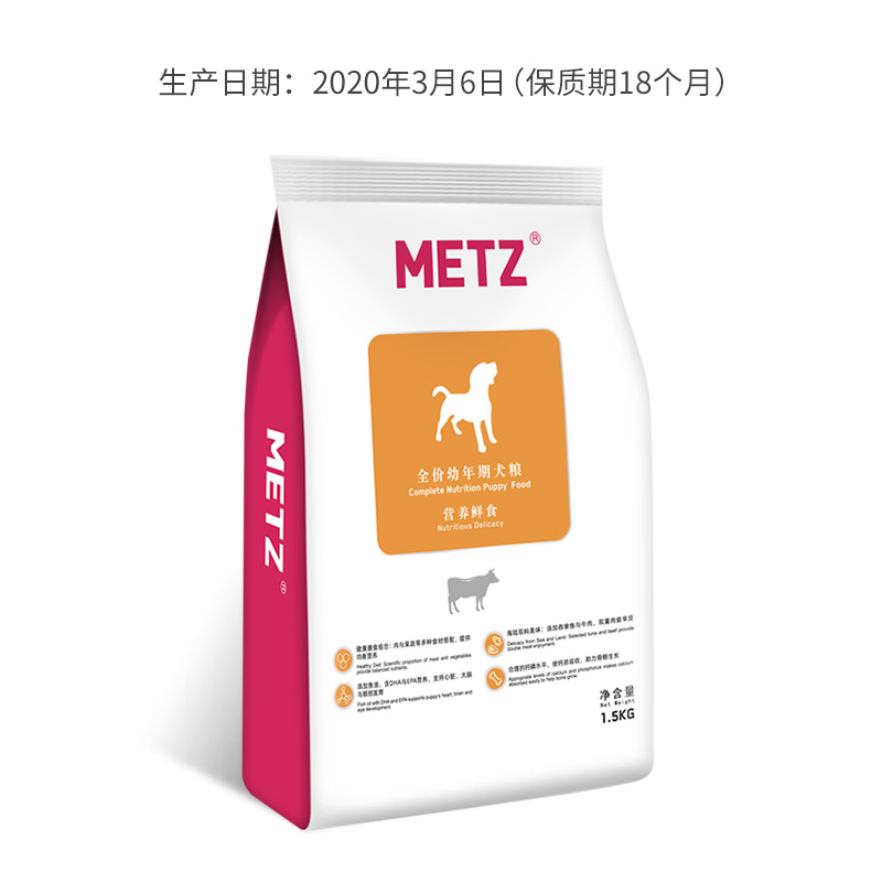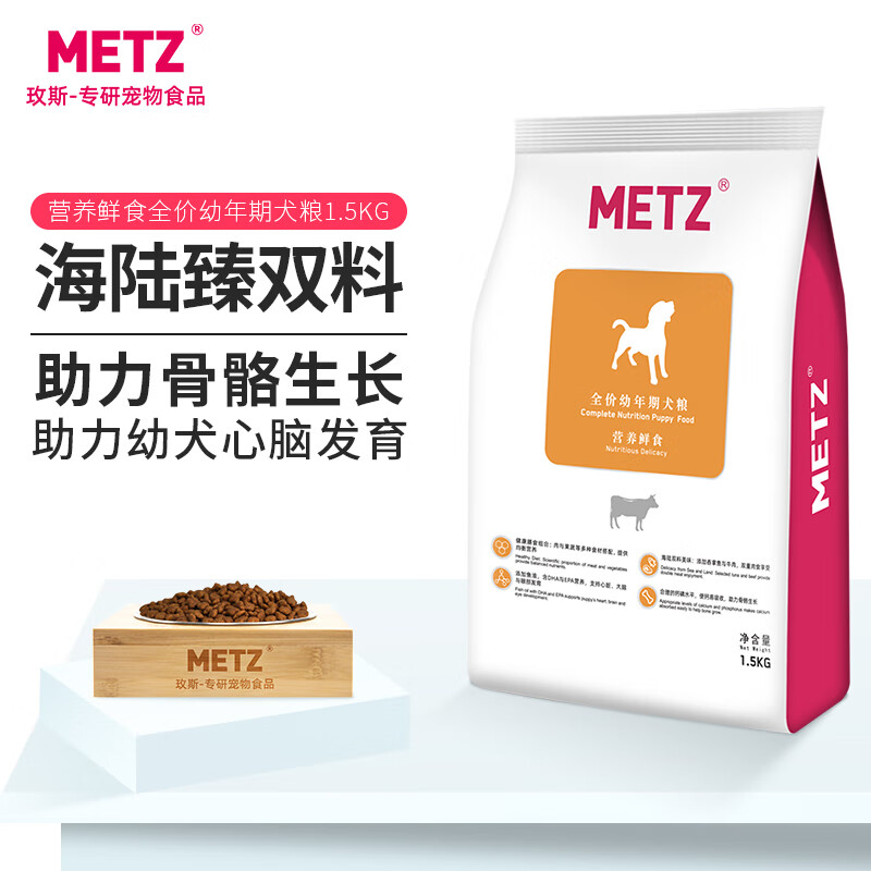 玫斯(metz)狗粮 营养鲜食全价系列金毛柯基拉布拉多泰迪法斗柴犬通用型主粮 幼犬粮1.5kg