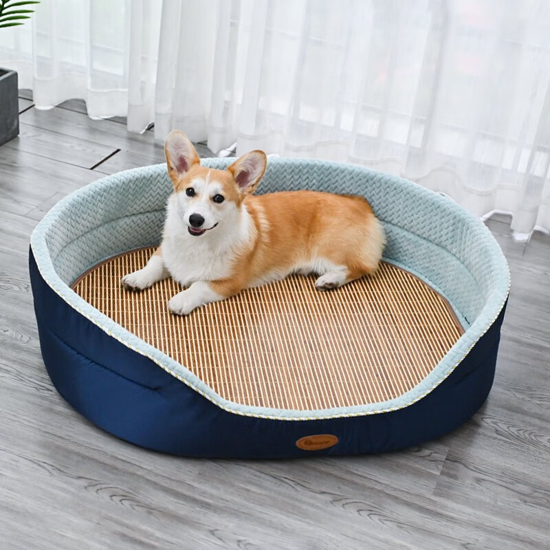 华元宠物狗窝小型犬四季通用窝可拆洗狗垫子睡觉中型犬狗床泰迪柯基狗狗秋冬天保暖厚垫耐咬款 蒂芙尼蓝内壁(带凉席款)-清凉度夏 小号45CM(建议8斤内宠物)