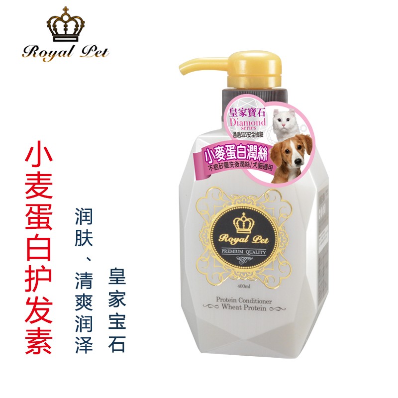 Royal pet皇家宝石狗狗沐浴露猫咪用香波宠物沐浴露护毛素泰迪比熊幼猫幼犬 小麦蛋白润丝护发素400ML