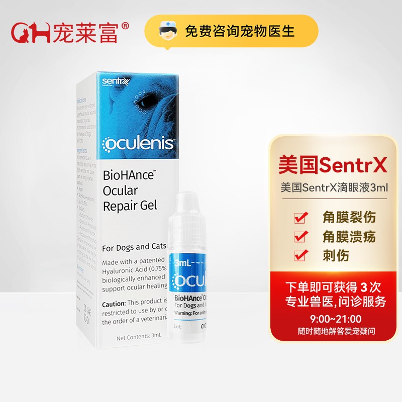 【宠医同款】美国SentrX闪粹宠物角膜腐骨修复凝胶眼药水 宠物狗猫眼睛角膜发炎溃烂干眼症宠莱富 3ml/小瓶