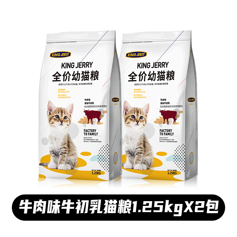 KINGJERRY猫粮幼猫专用牛初乳蛋黄FOS益生元全价奶糕粮单包1.25kg共5斤 【实发两包】牛肉味牛初乳