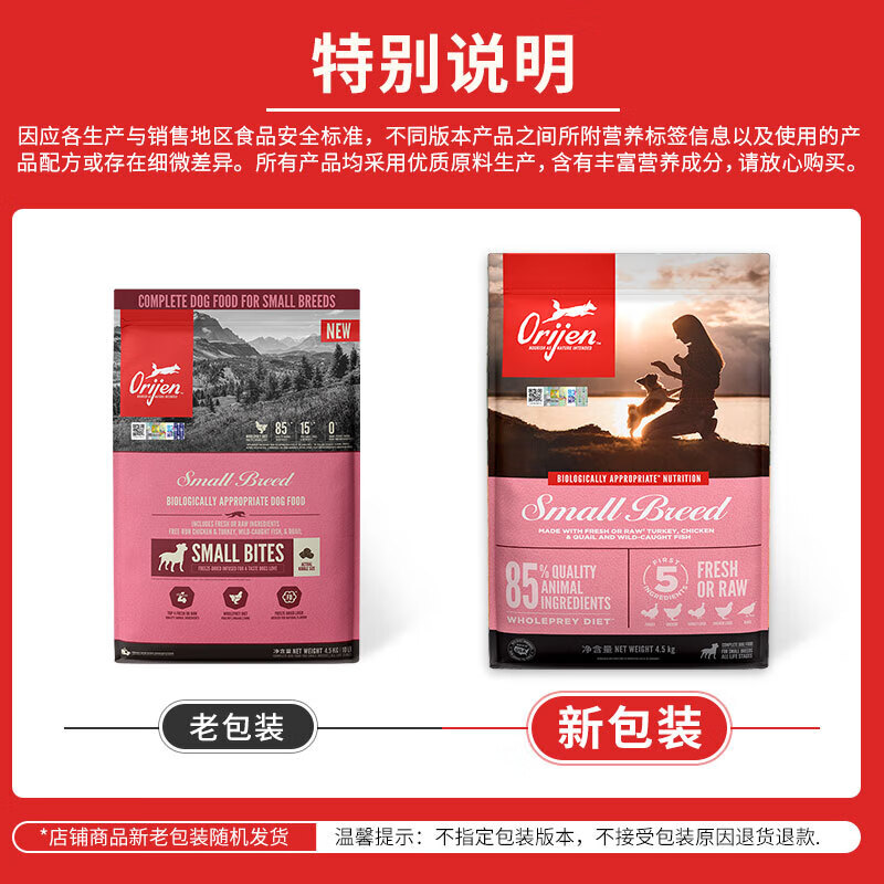 原始猎食渴望(ORIJEN)渴望犬粮Orijen原装进口室内伴侣小型犬狗粮小颗粒易咀嚼通用狗粮 小型犬粮1.8kg【美版】