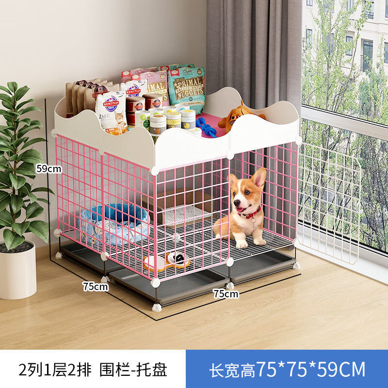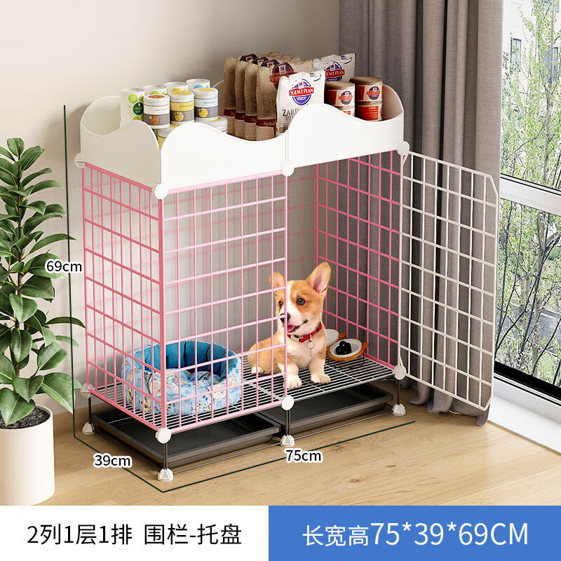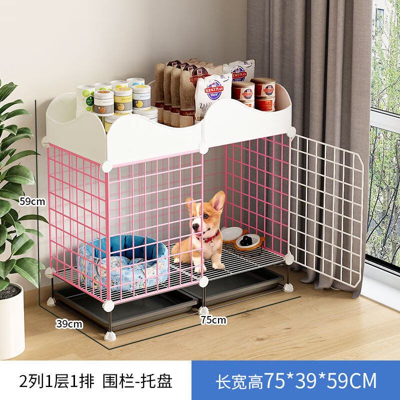 狗笼狗笼子带厕所带托盘狗别墅超大狗狗窝家用网红颜值宠物笼蒂乐森 2列1层1排 围栏【糖果粉】