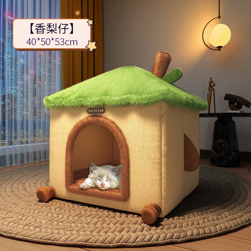 蔻丝猫窝秋冬天保暖加热电热发热毯智能恒温加热网红猫窝狗窝四季通用冬季封闭式保暖睡觉 【防塌窝-大号香梨屋】40_50_53cm