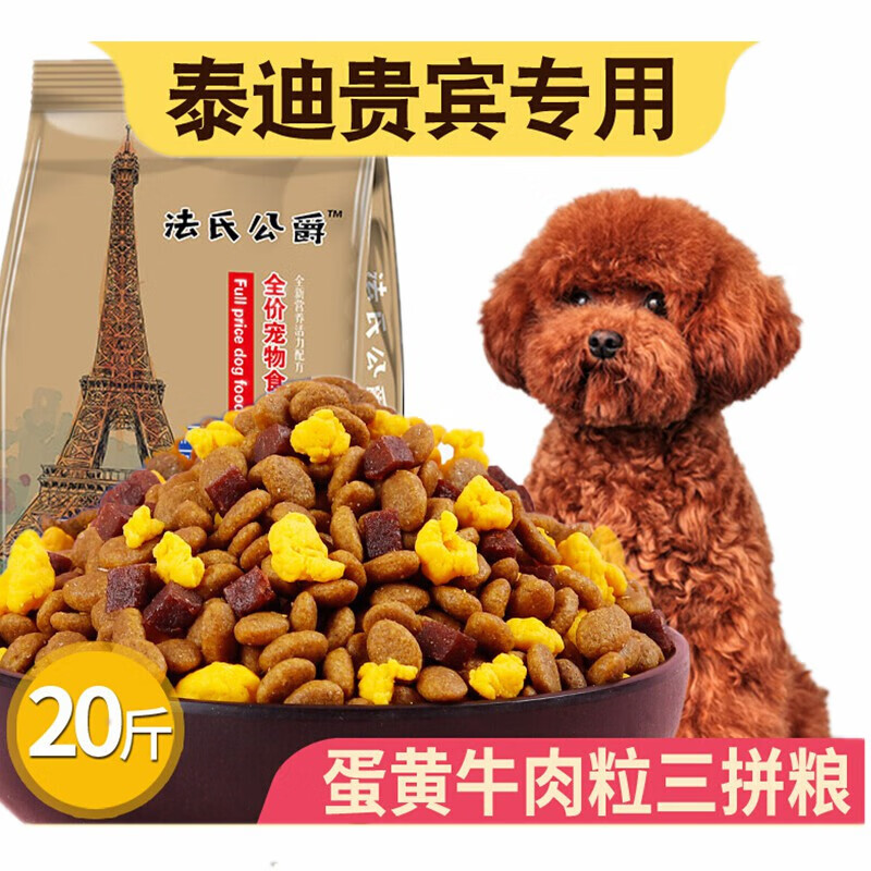 法氏公爵泰迪贵宾专用狗粮小型犬成犬幼犬20斤美毛补钙天然粮 牛肉粒蛋黄三拼粮