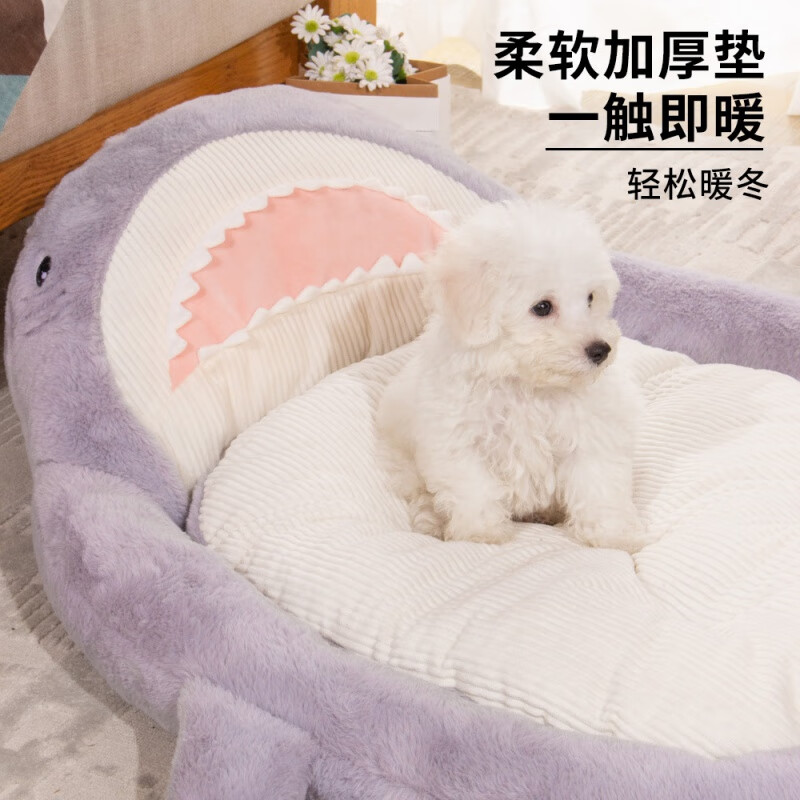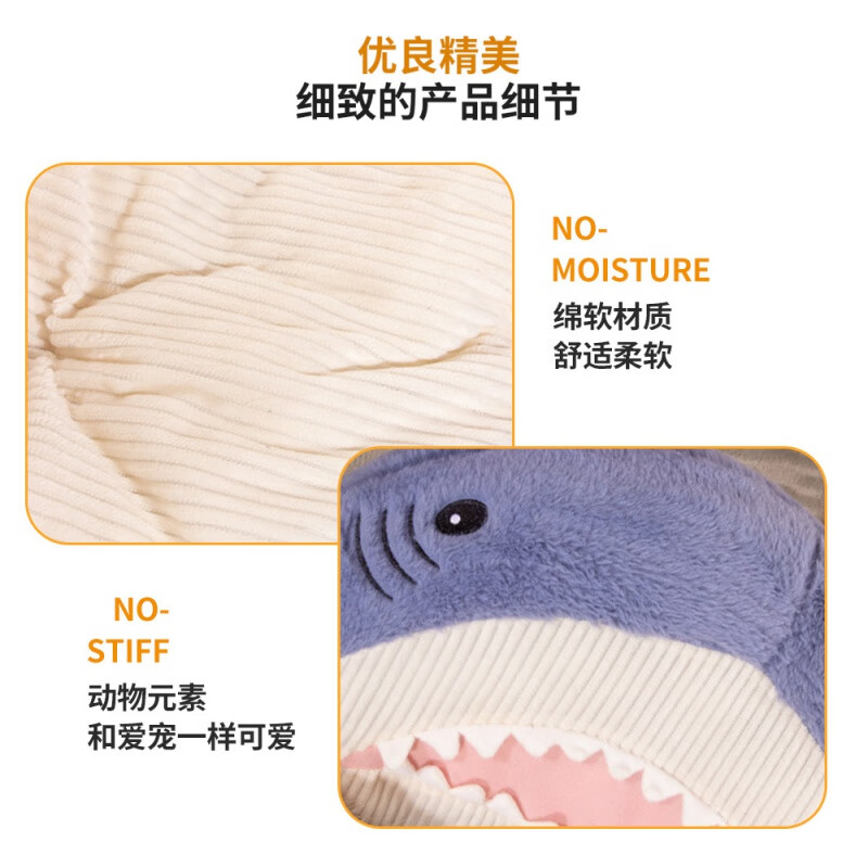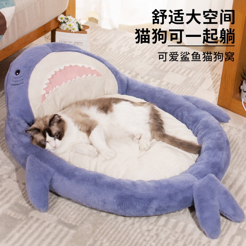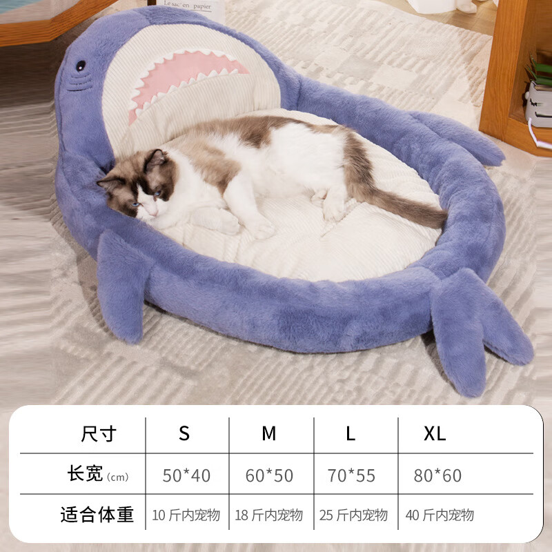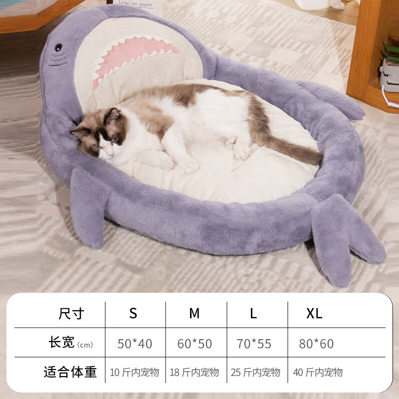 梦舒雅新款鲨鱼猫沙发宠物窝防滑可爱鲨鱼猫狗窝可拆洗鲨鱼肚猫垫宠物床 鲨鱼沙发灰色 S(50*40)10斤内