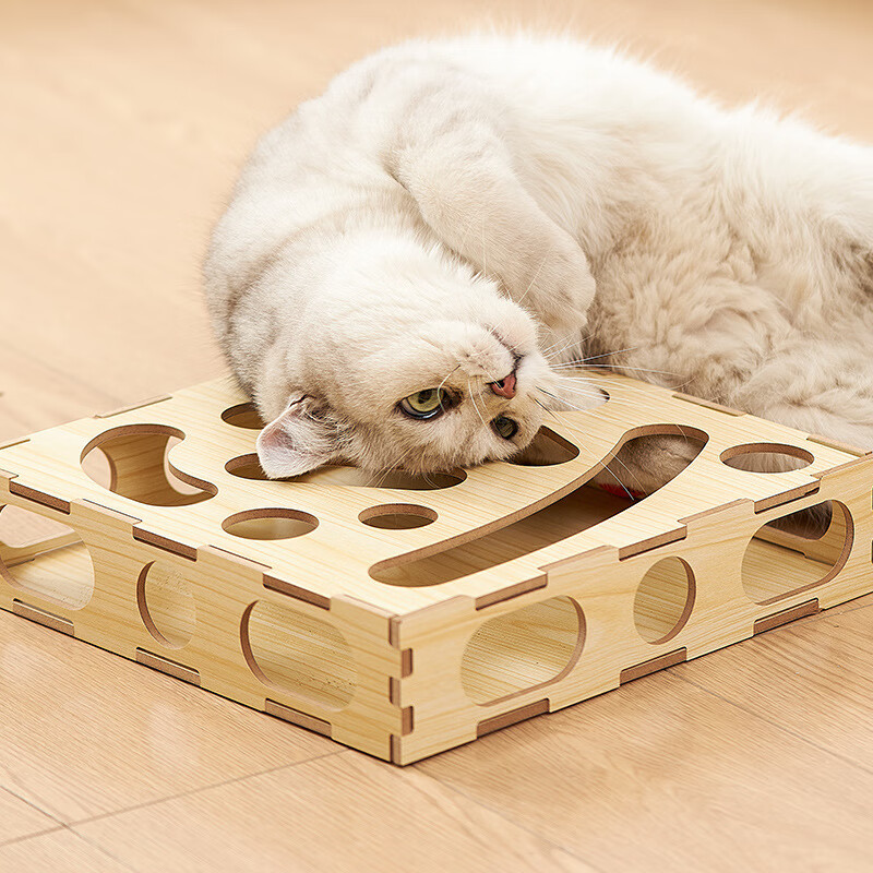 实木转盘猫玩具漏食球 实木猫咪轨道铃铛球玩具盒小猫幼猫转盘自嗨漏食逗猫解闷神器 基础款(28cm*28cm*6cm)