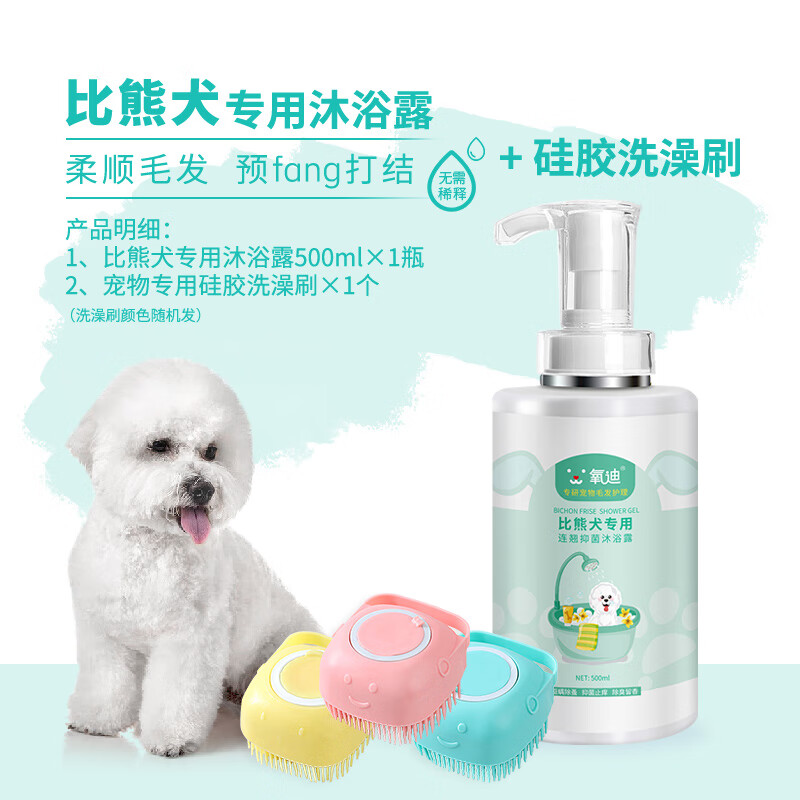 氧迪[新疆可发]比熊专用狗狗沐浴露宠物洗澡用品香波除臭抑菌止痒留香 比熊沐浴露 洗澡刷