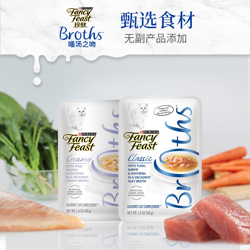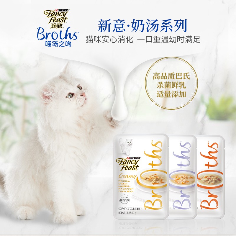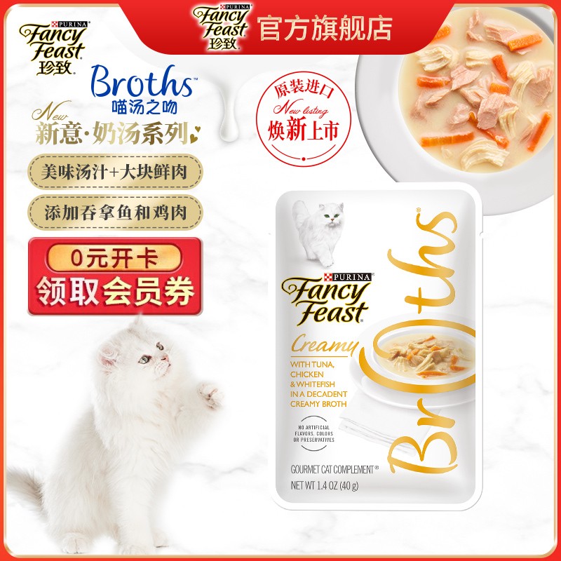 珍致(FancyFeast)喵汤之吻 泰国进口宠物零食软包猫罐头 猫零食 精选鲜浓汤包 【奶汤】吞拿鱼 鸡肉