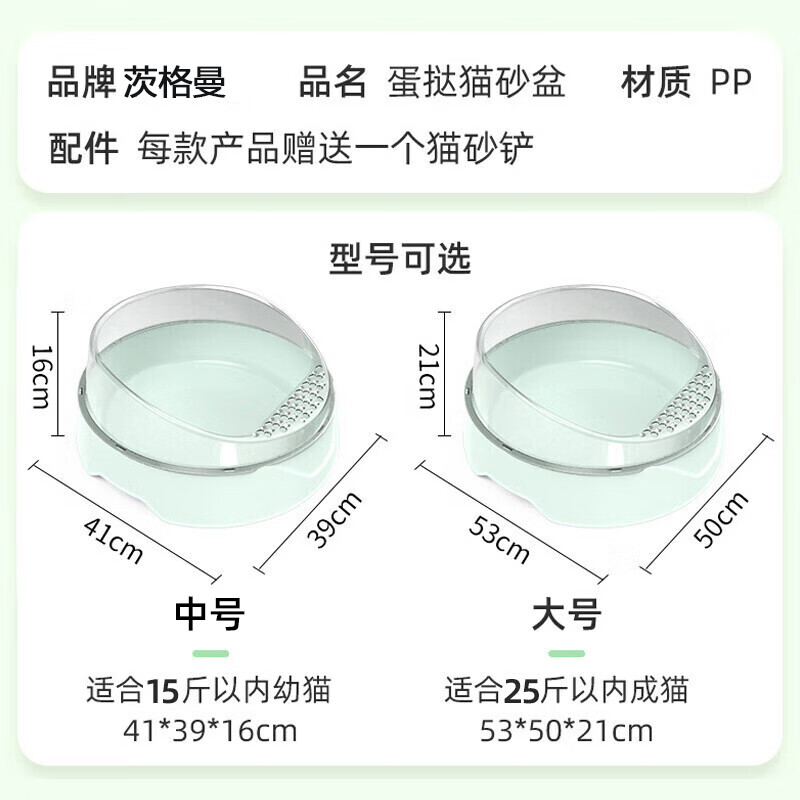 茨格曼 猫砂盆半封闭猫厕所【薄荷绿中号】防外溅幼猫猫沙盆 成猫猫屎盆