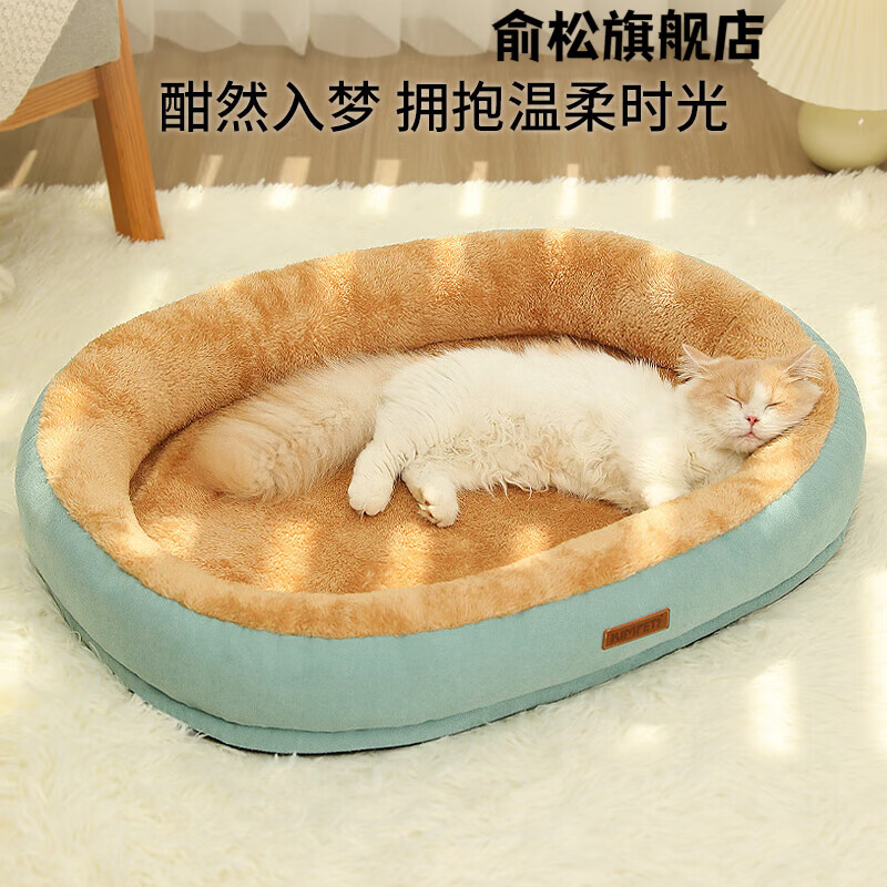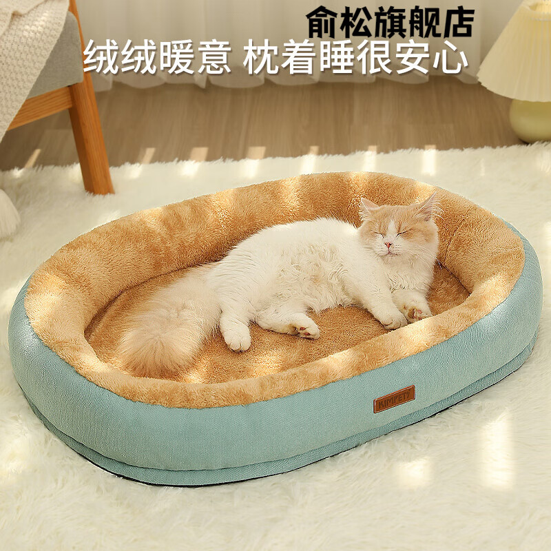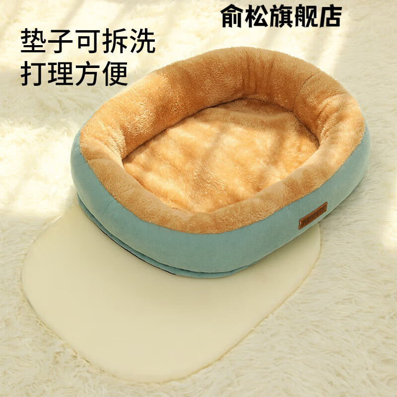 猫窝冬季保暖可拆洗狗窝沙发睡觉用四季通用隧道猫床垫子宠物用品 嫩绿色—【升级加高加厚款深睡窝】 M【尺寸50*40适用10斤内萌宠】建议