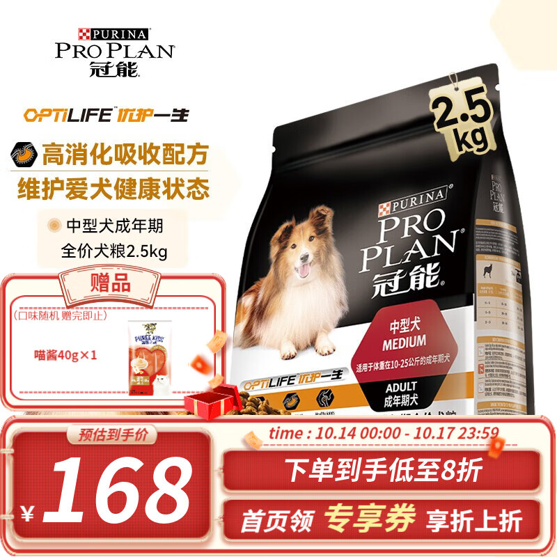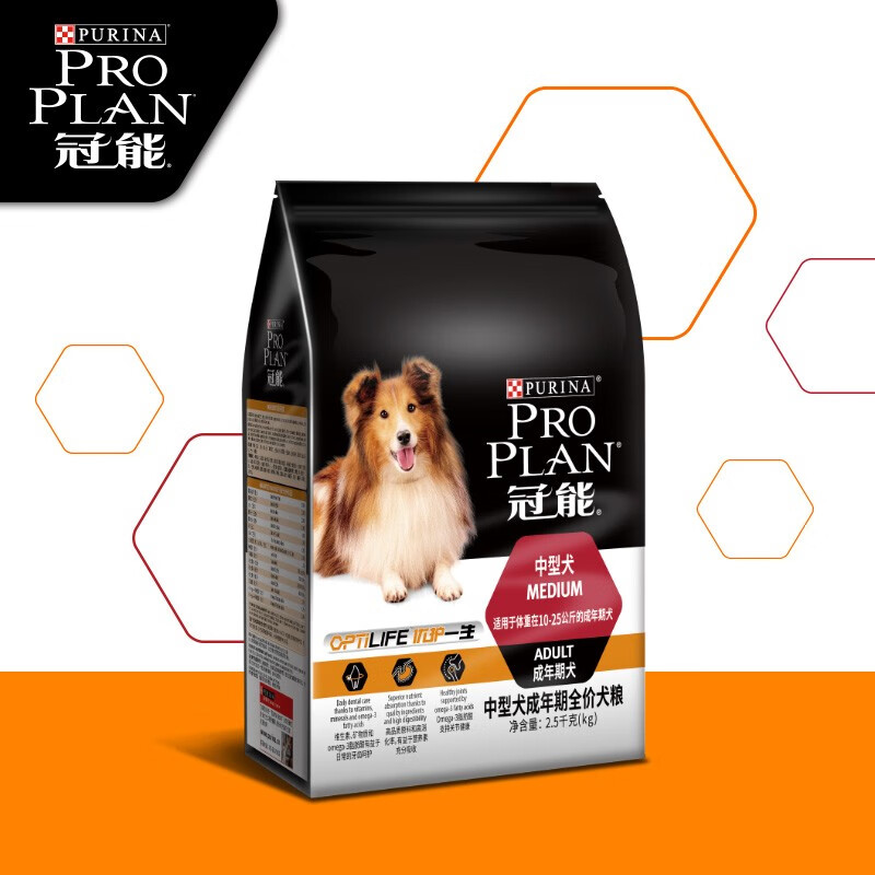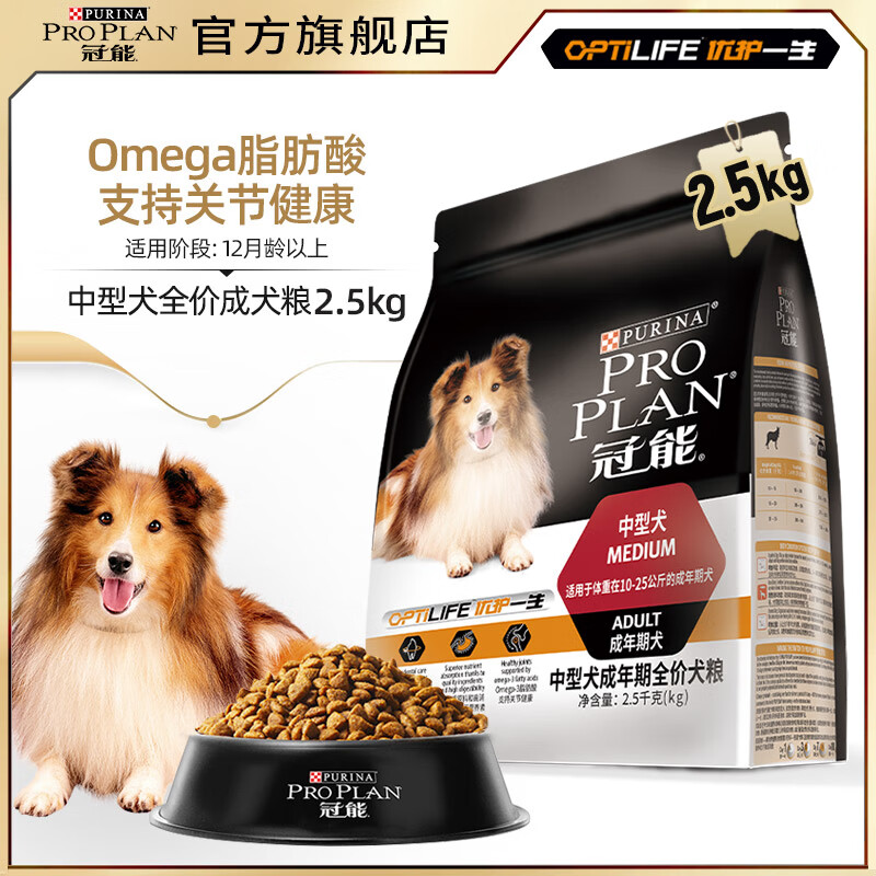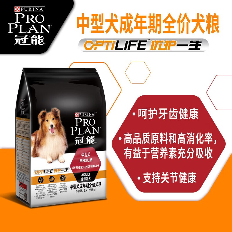 冠能(PRO PLAN)狗粮 中型犬成犬狗粮 萨摩哈士奇柴犬边牧通用型 2.5kg