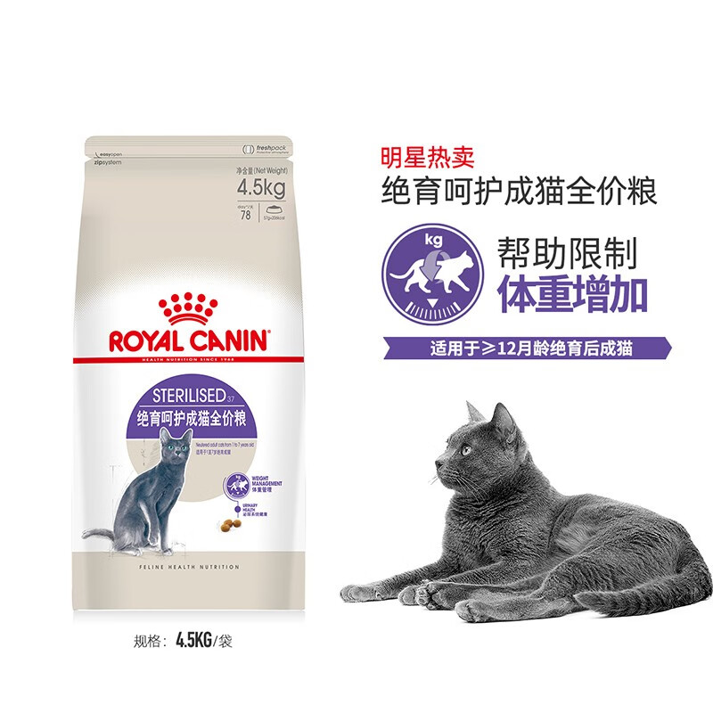ROYAL CANIN皇家猫粮 成猫粮 SA37绝育后成猫全价粮 4.5kg