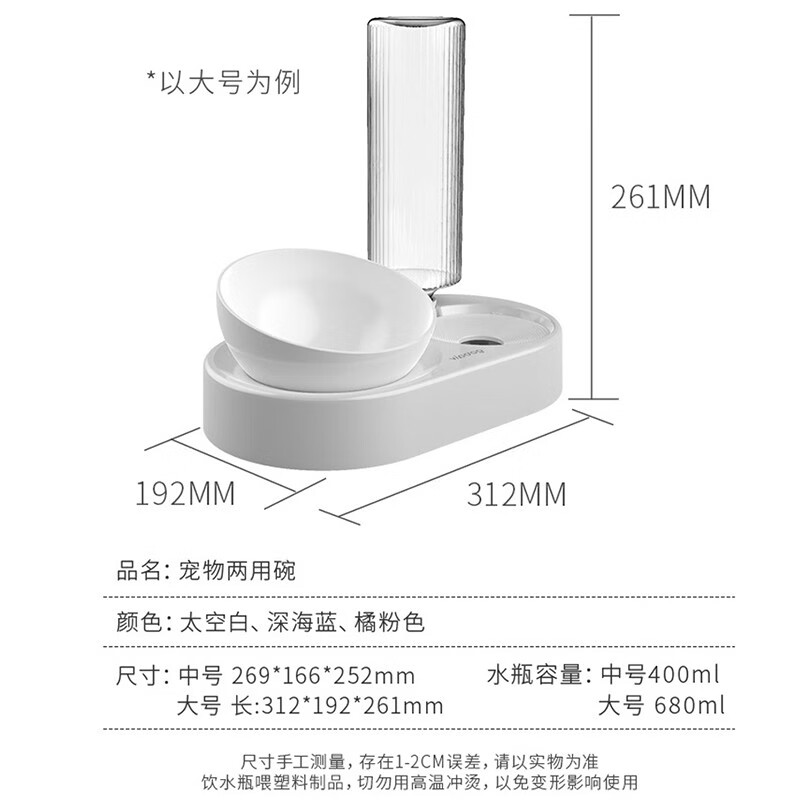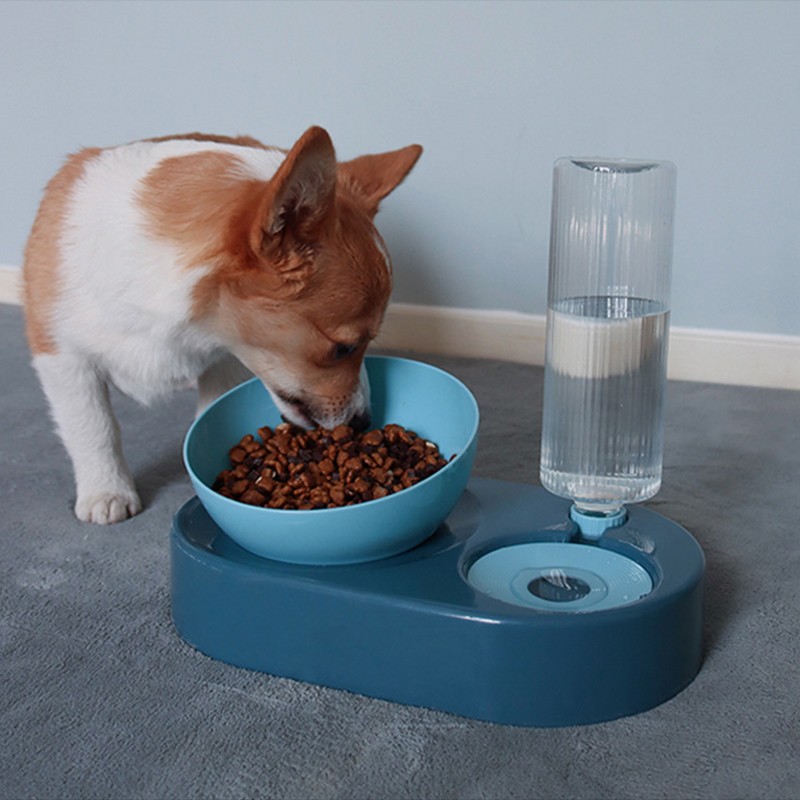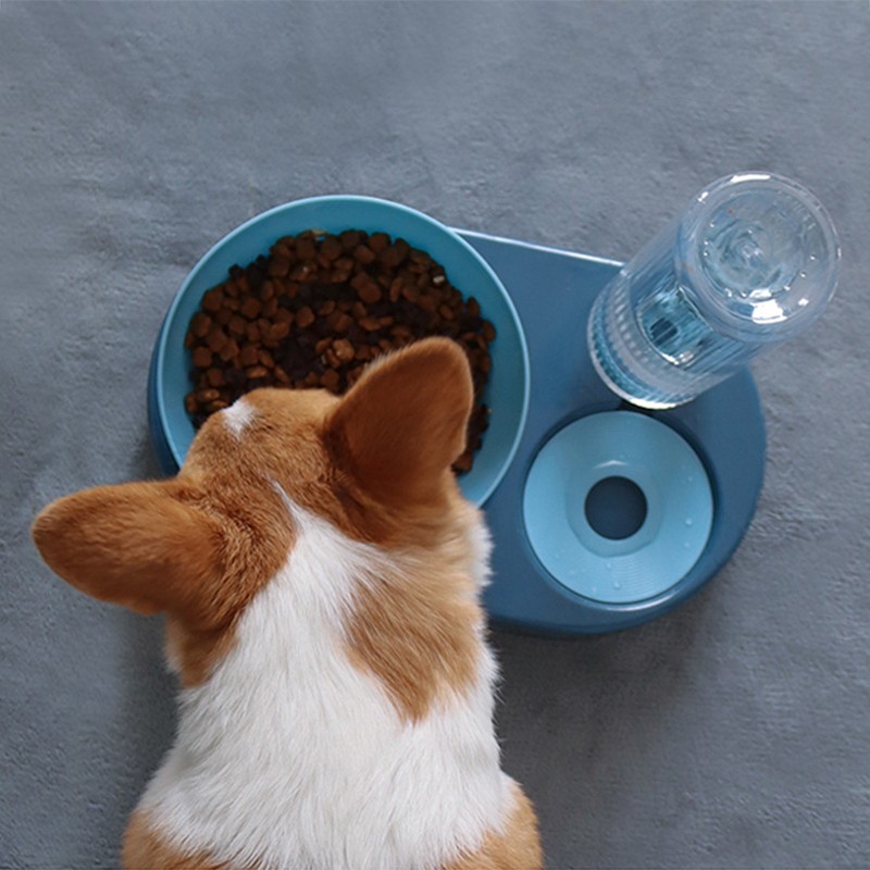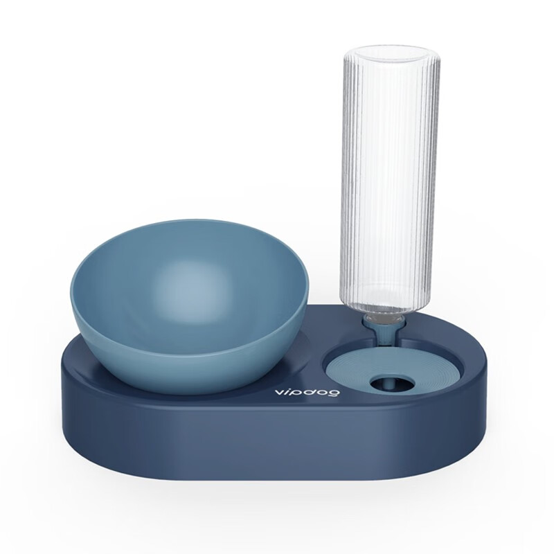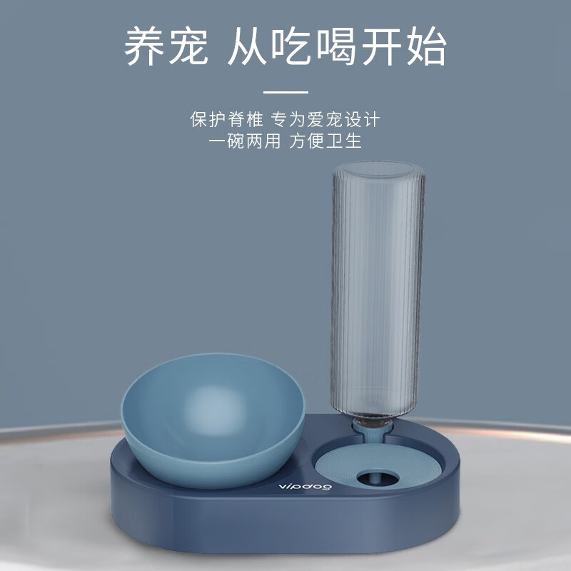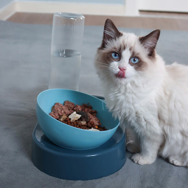 宝贝故事 猫盆猫碗 自动饮水猫粮碗双碗大号猫碗护颈猫喝水器宠物猫食盆 蓝色 大号