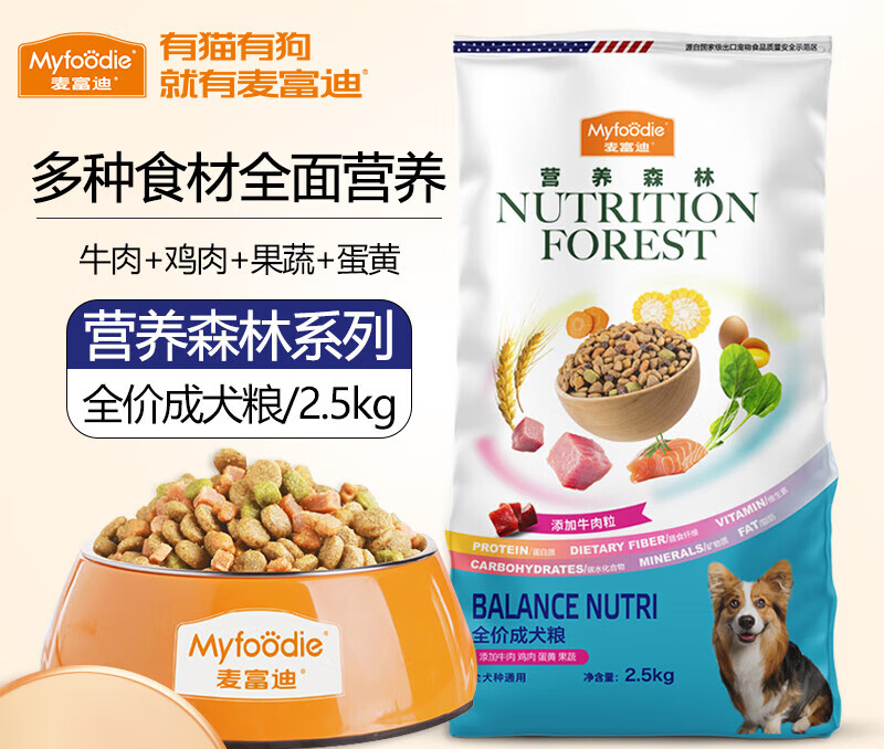 麦富迪(Myfoodie)麦富迪狗粮2.5kg营养森林全价幼年成年期泰迪金毛通用天然犬粮5斤 全价成犬粮【2.5kg】