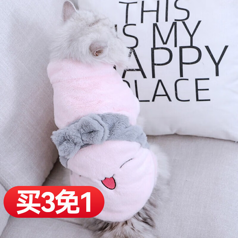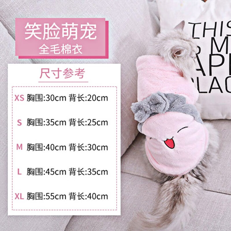 华元宠具(hoopet)猫咪衣服宠物猫猫网红小猫衣服春季空调房保暖幼猫无毛猫可爱服装 笑脸粉色棉衣 XL:胸围50cm(建议10-14斤)