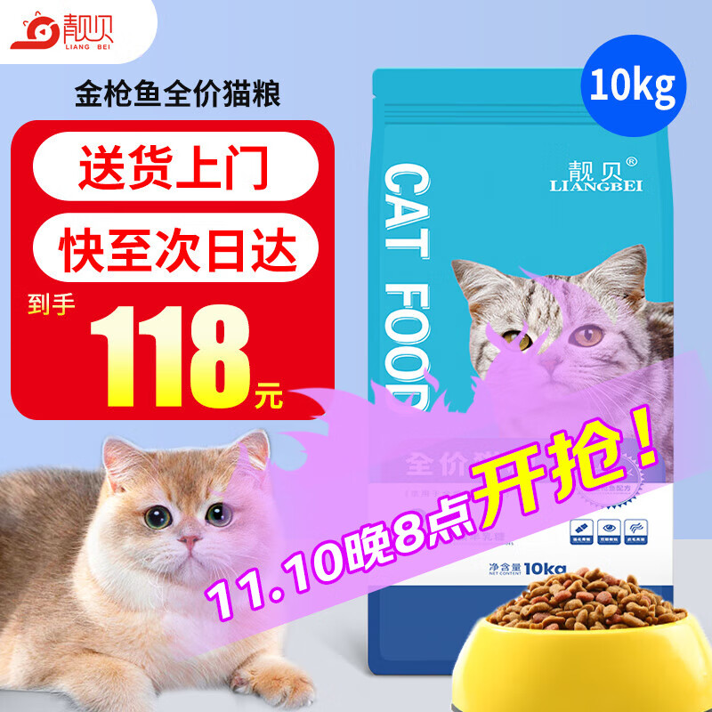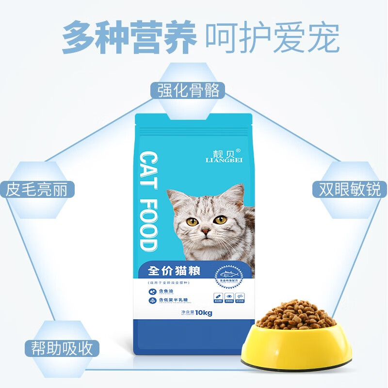靓贝猫粮10kg金枪鱼三文鱼配方幼猫成猫通用20斤猫粮 10kg