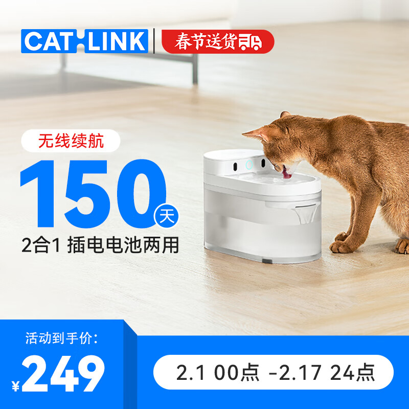 CATLINK智能宠物无线饮水机 自动循环过滤流动水喂水器不插电猫咪喝水器 无线智能饮水机