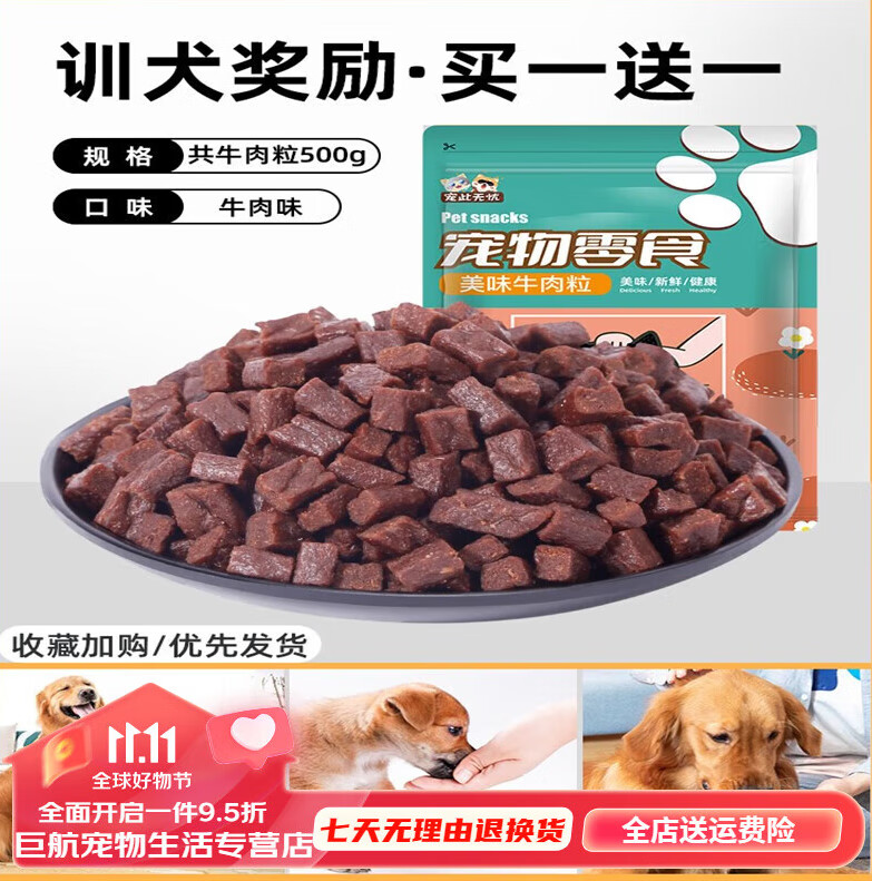 凛东瓜洲牧狗狗牛肉粒金毛大中小型犬训练奖励宠物泰迪幼犬零食肉干 新升级训犬牛肉粒原味 2包