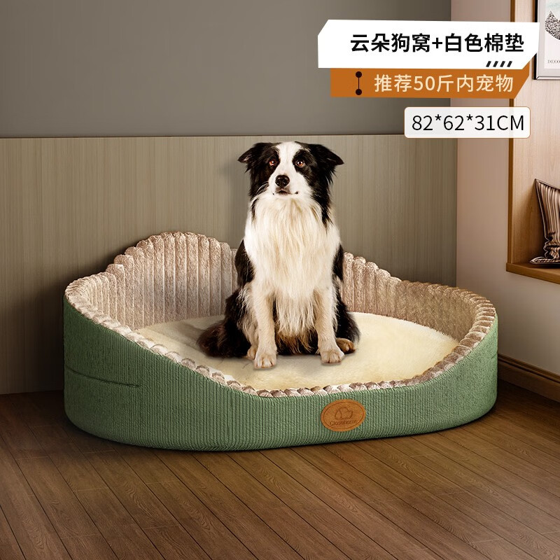 宠趣汇狗窝冬季保暖可拆洗四季通用睡觉用狗垫子耐咬秋冬天泰迪小型犬 大号浅绿色 耐咬狗窝 保暖棉垫