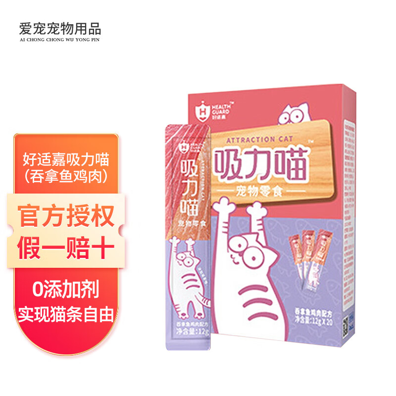 好适嘉宠物零食 吸力喵条240g(12g*20)成幼猫通用猫咪猫条零食 吸力喵猫条(吞拿鱼鸡肉)12g*20