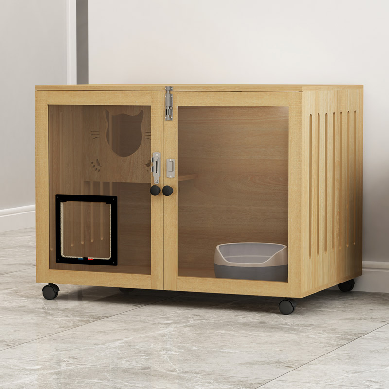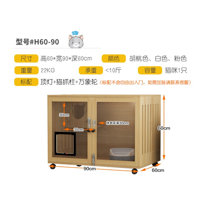 七夕旺猫笼子 实木生态猫别墅 猫笼木质 猫舍猫窝封闭式 防水可擦拭消毒 高60宽90深60胡桃色
