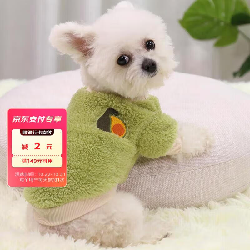 搭啵兔冬季加厚保暖狗狗猫咪衣服两脚中小型犬防掉毛厚款宠物衣服 绿小牛油果 L(建议6-8斤)