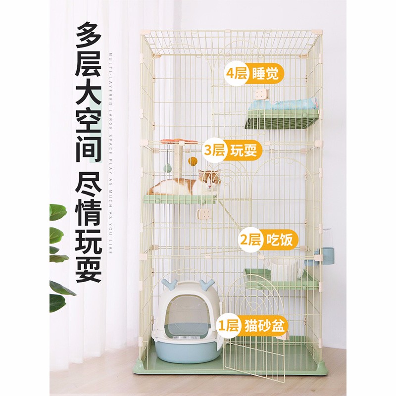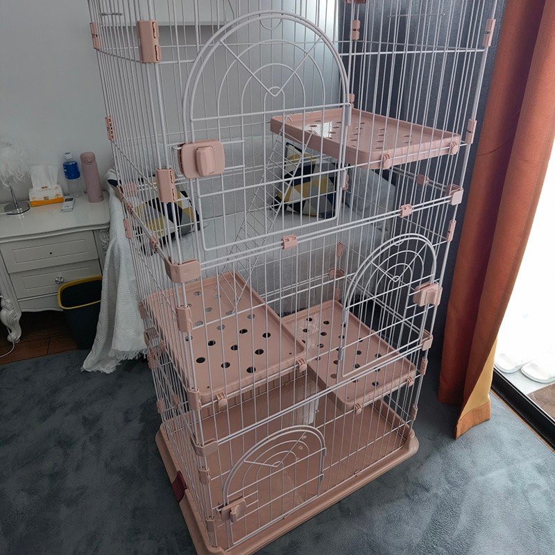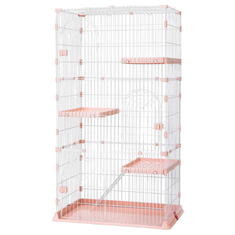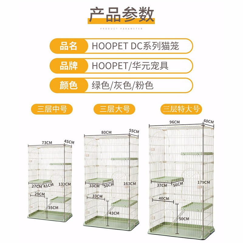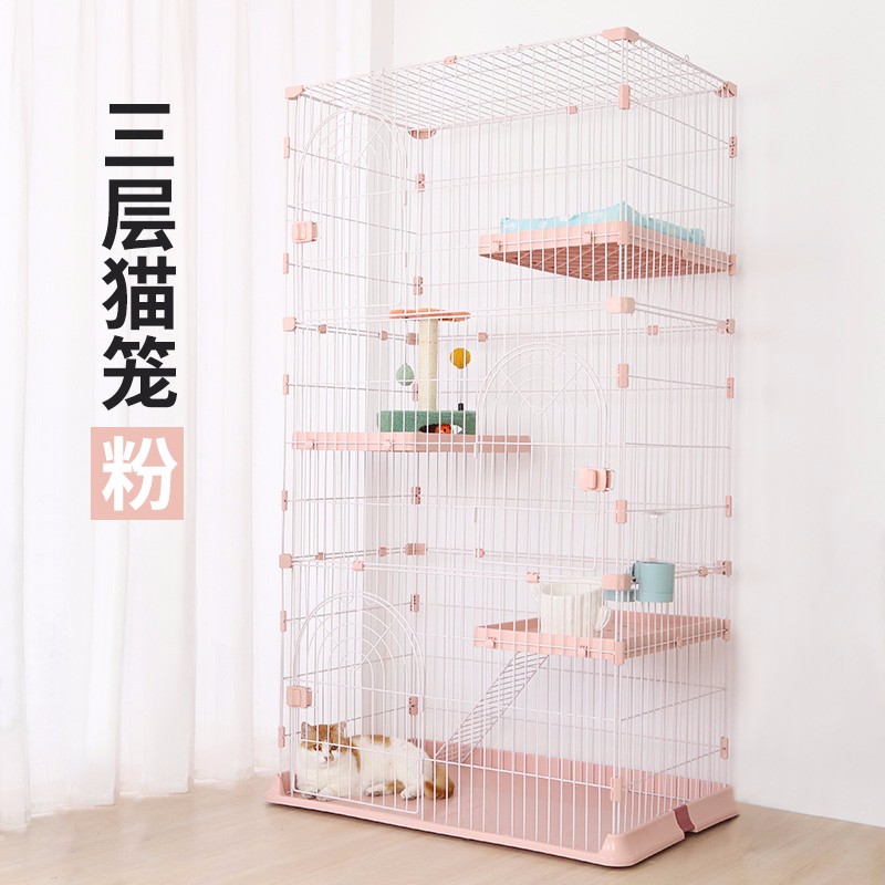 hoopet猫笼子大号家用多功能猫别墅宠物围栏双层三层室内自由空间猫窝折叠猫龙子 三层猫笼(猛男粉) 【店长推荐】超值性价比款(中号)