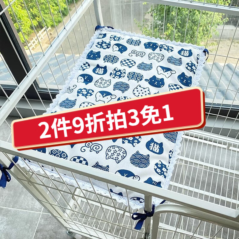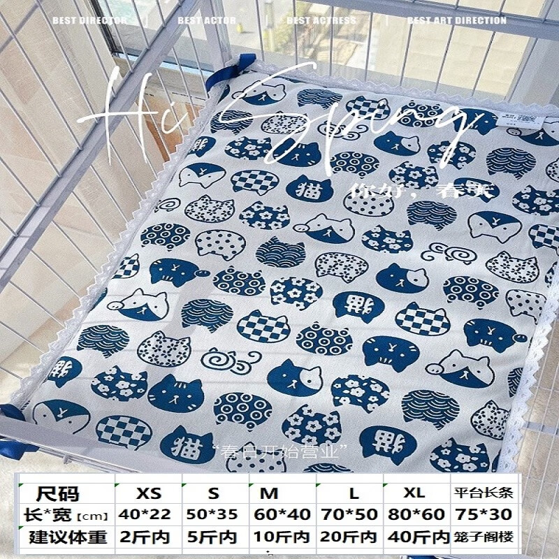 爵氏猫垫子猫窝狗猫咪被子夏季床垫宠物凉席垫四季平台棉垫狗狗毯子 花边白底发财猫 -(凉席款) M号(建议体重15斤内)