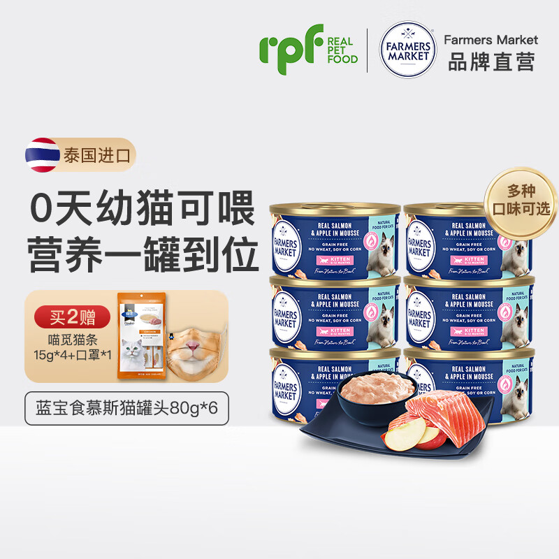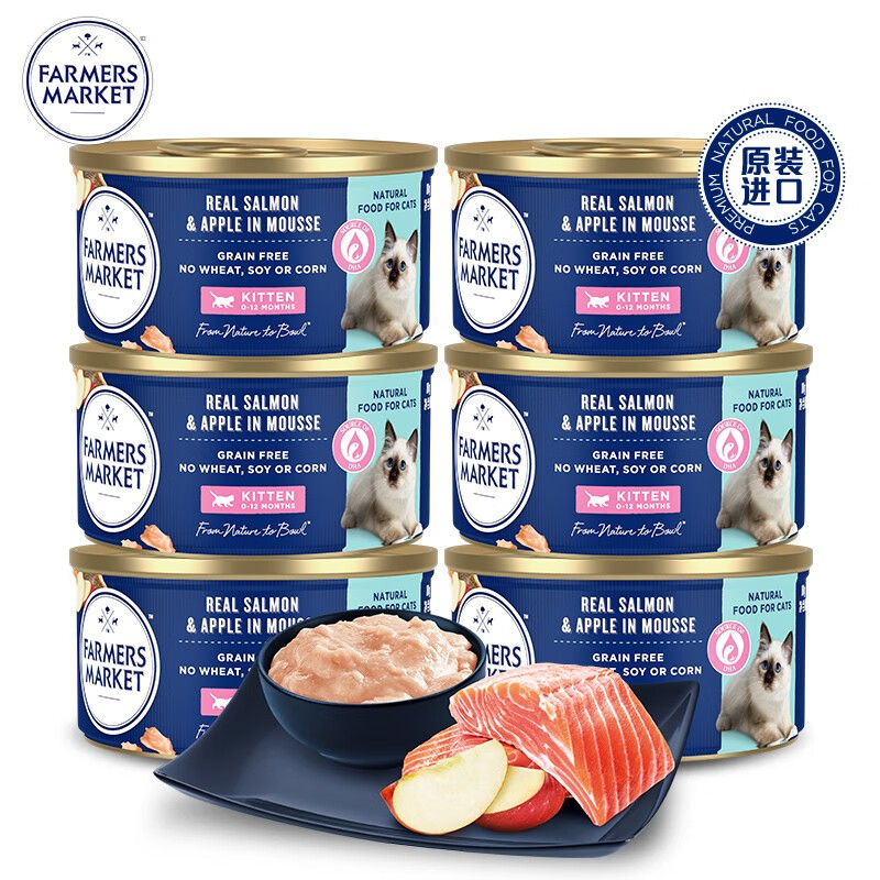Farmers Market幼猫罐头 主食湿粮 宠物零食 慕斯奶糕罐头 澳洲品牌 三文鱼苹果配方 80g*6