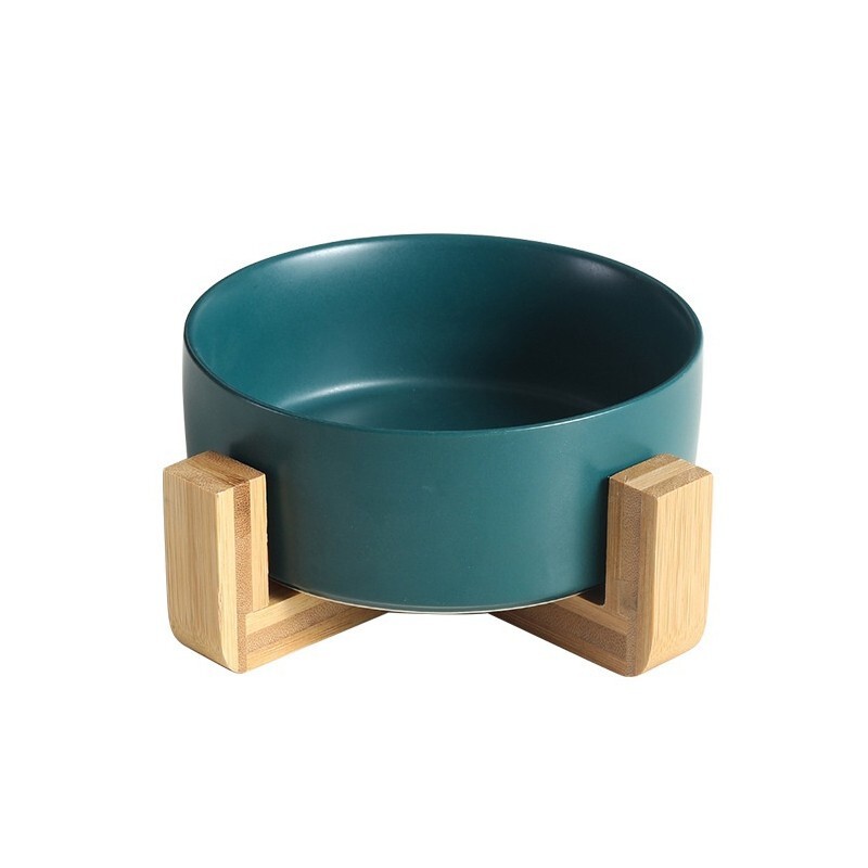 宝贝故事 猫碗陶瓷 护颈猫碗防滑猫粮碗双碗大号猫食碗宠物猫饭盆 绿色单碗 碗架 小号