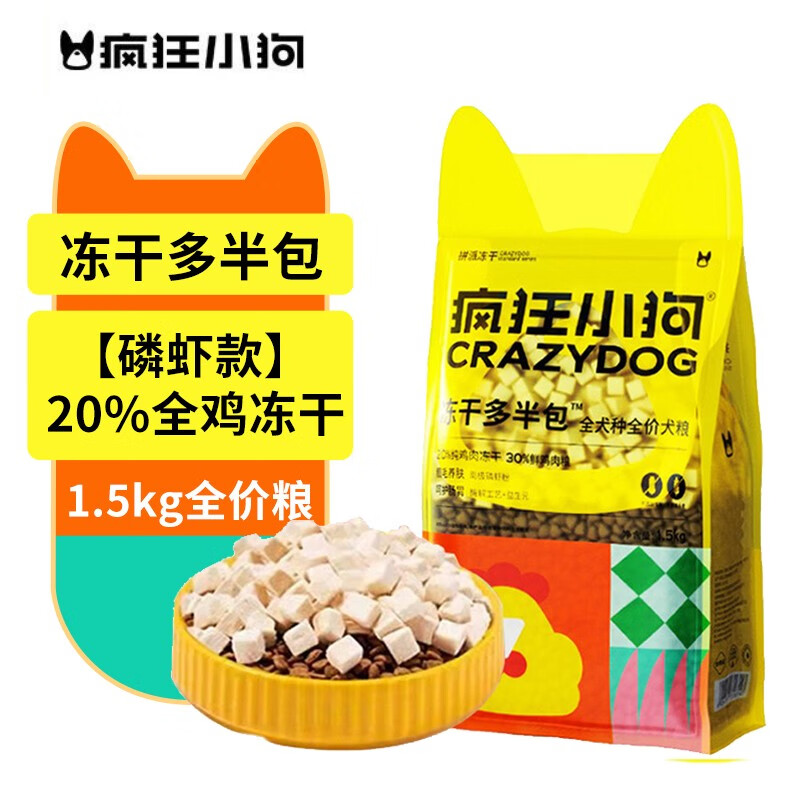 疯狂小狗狗粮冻干多半包狗粮1.5kg小型犬成犬幼犬狗粮泰迪比熊 【磷虾款】 20%全鸡冻干