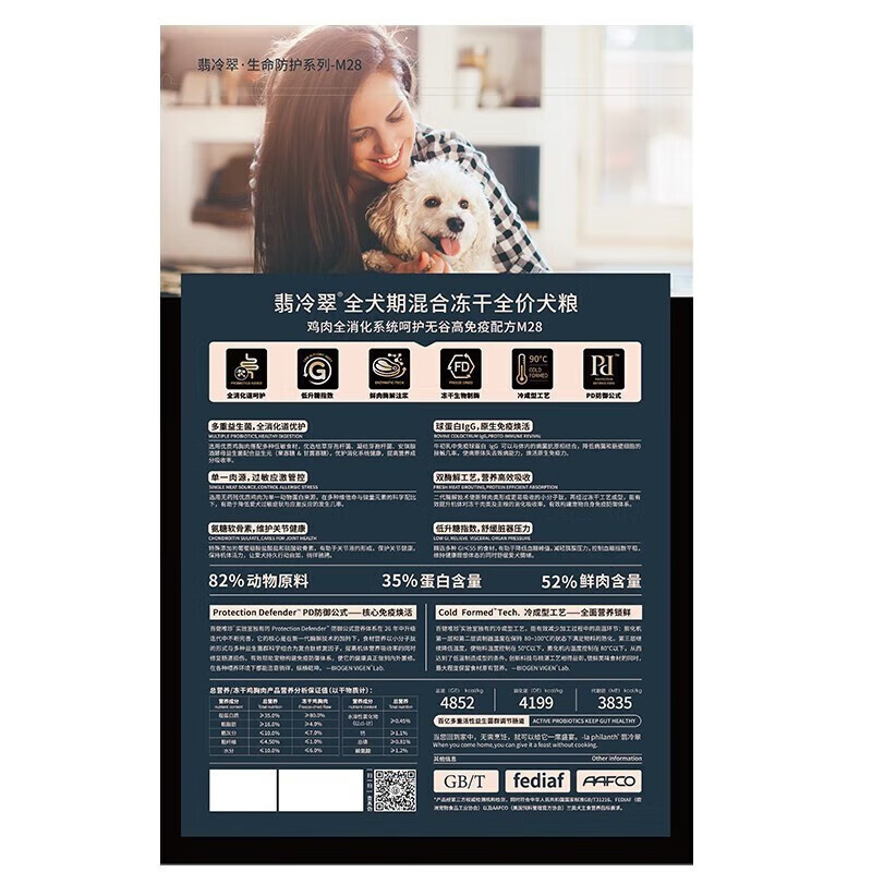 翡冷翠M系列狗粮冻干鸡胸肉低敏无谷配方全期犬粮全阶段适用 M28鸡肉全价犬粮5.45kg