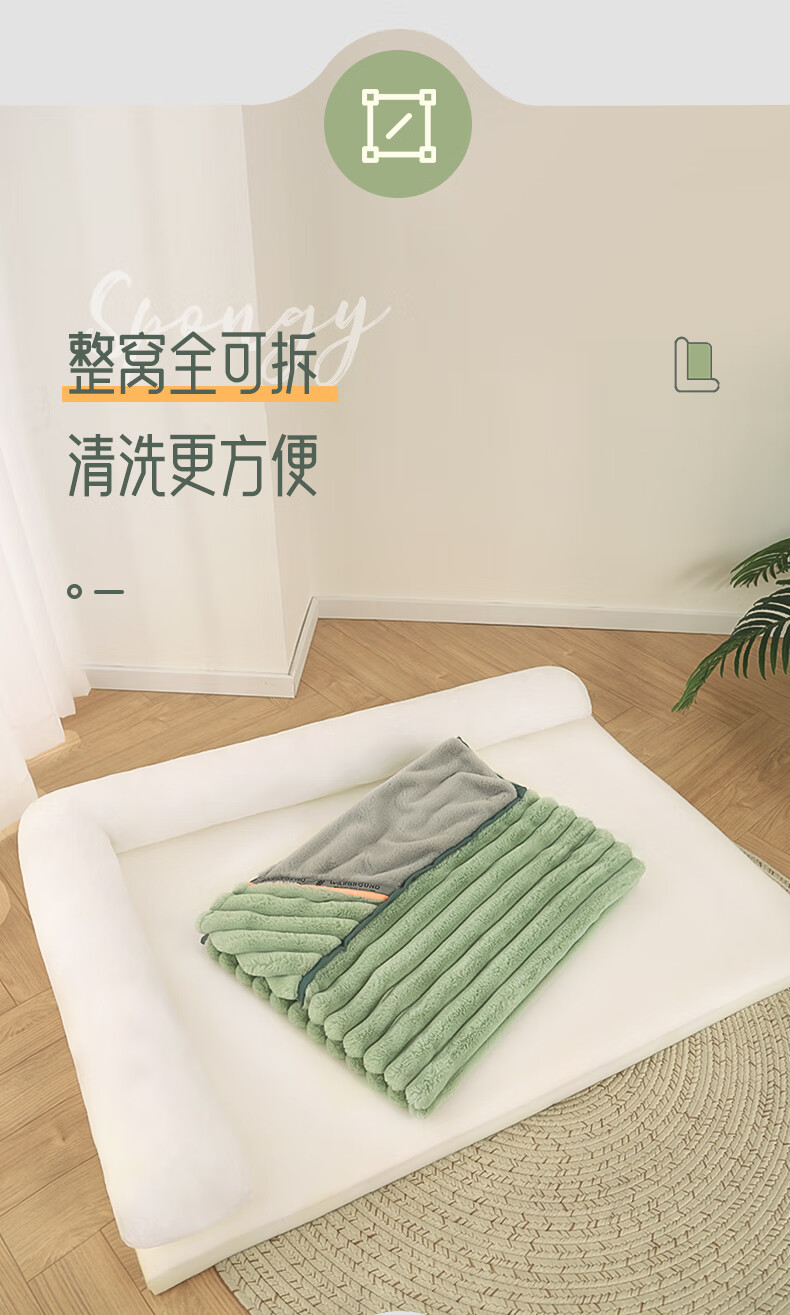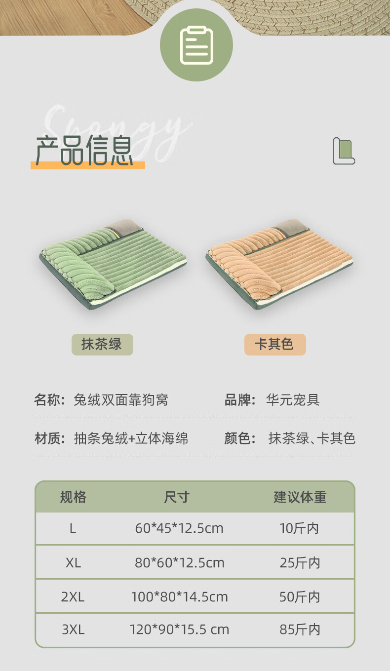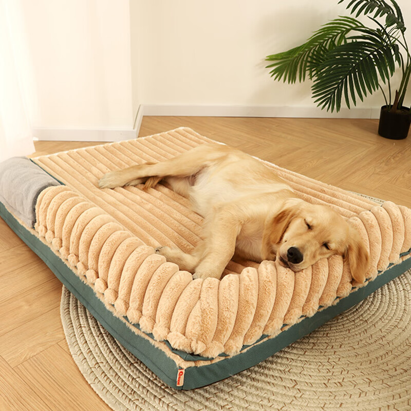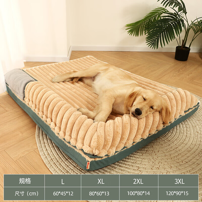 华元宠具(hoopet)狗垫子狗窝狗狗睡垫床金毛中大型犬冬天宠物沙发耐咬冬季防潮保暖 【升级长绒】兔绒咖两面靠割条 3XL-(建议100斤内)