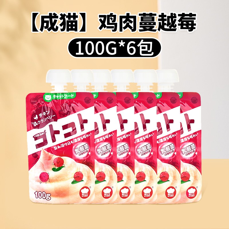 华元宠具(hoopet)地狱厨房猫零食咕噜酱金枪鱼鸡肉泥幼猫成猫增肥猫条湿粮 【成猫】鸡肉蔓越莓-100g*6包