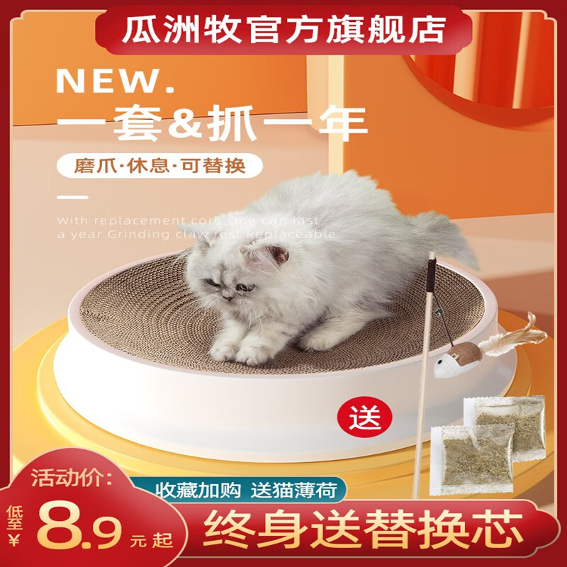 猫抓板窝磨爪猫爪板不掉屑耐磨一体猫窝瓦楞纸圆形猫玩具猫咪用品 特大号配套替换芯*1