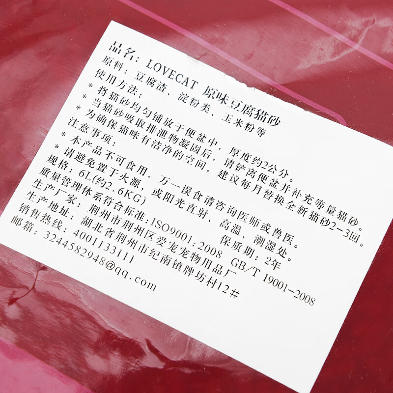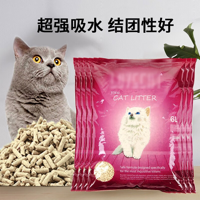 爱宠爱猫lovecat豆腐猫砂高效除臭N1品质绿茶豆腐砂无尘结团不沾底猫 原味猫砂6L*6袋(整箱)