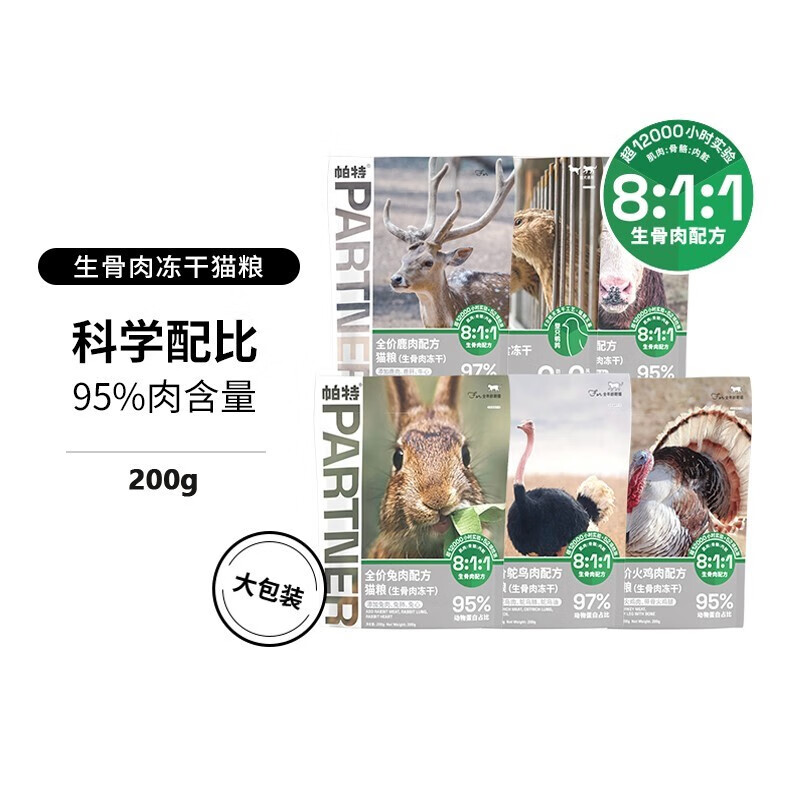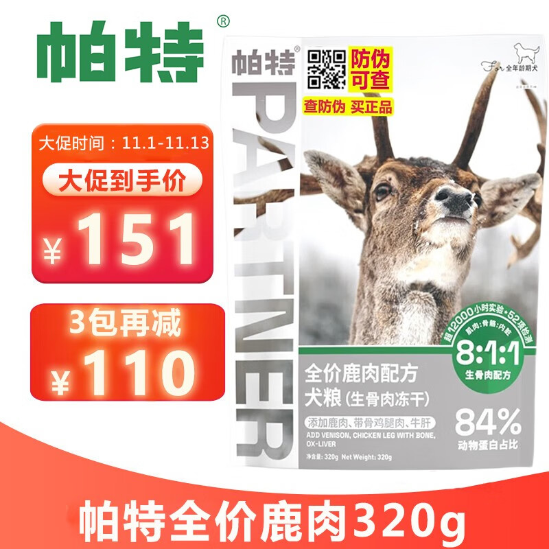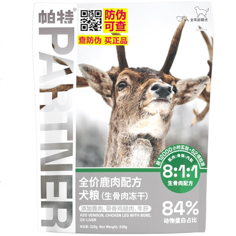 【带防伪标】帕特冻干生骨肉猫零食 猫咪狗狗主粮冻干零食磨牙增肥发腮肉干 狗狗款鹿肉320g【犬用】