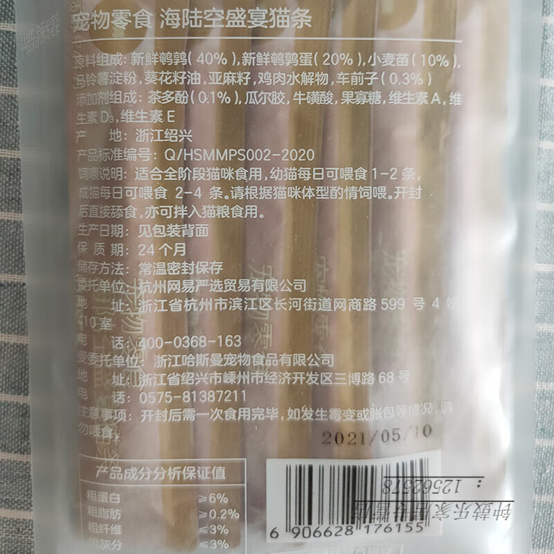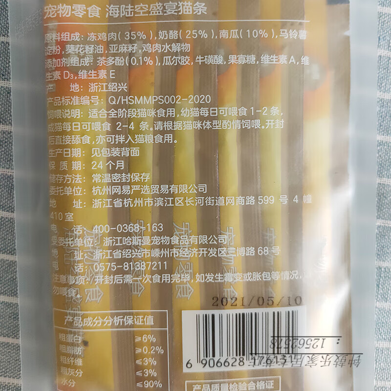 网易严选海陆空盛宴猫条成猫增肥发腮妙鲜包鱼肉湿粮包猫咪零食 鸡肉味*3包(每包6条) 72g