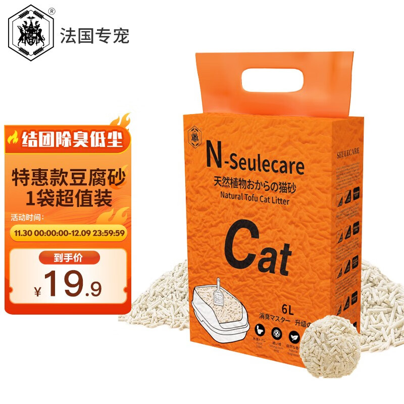 专宠法国专宠豆腐猫砂原味除臭无尘抑菌结团留香成幼猫咪宠物家用 原味6L【闪电结团】特惠装1袋