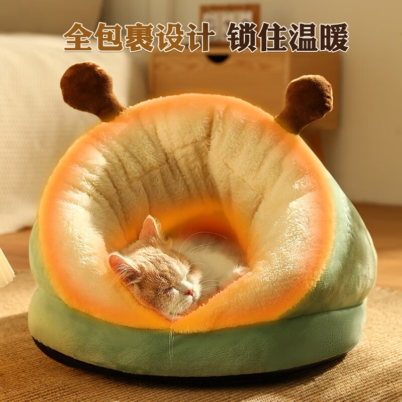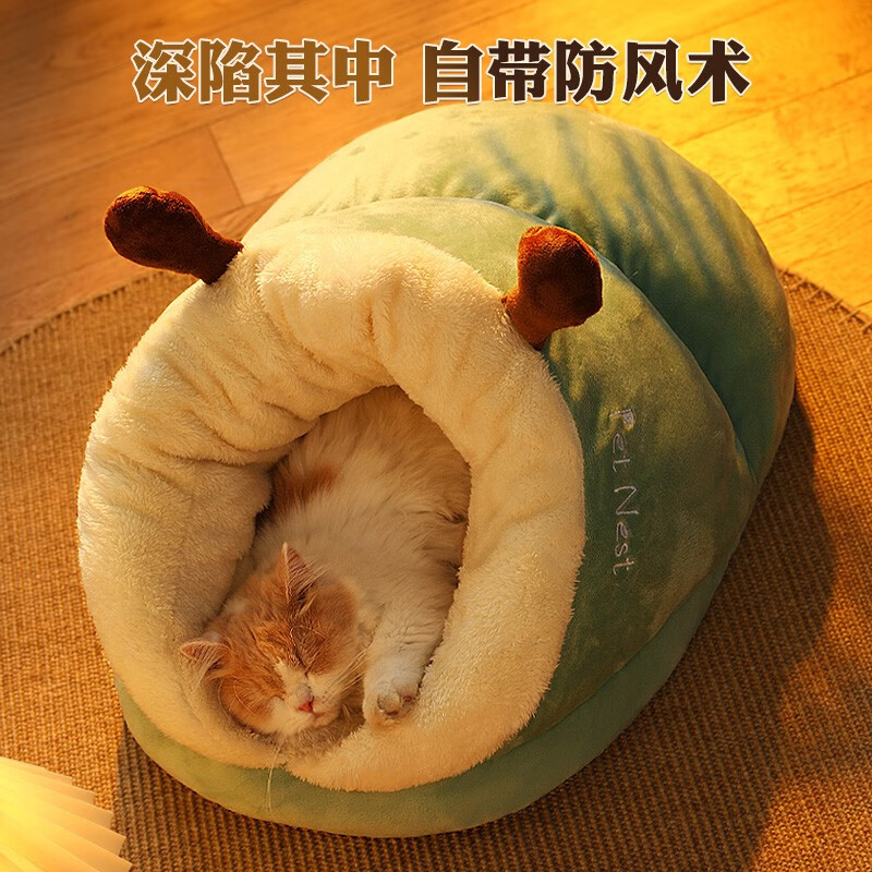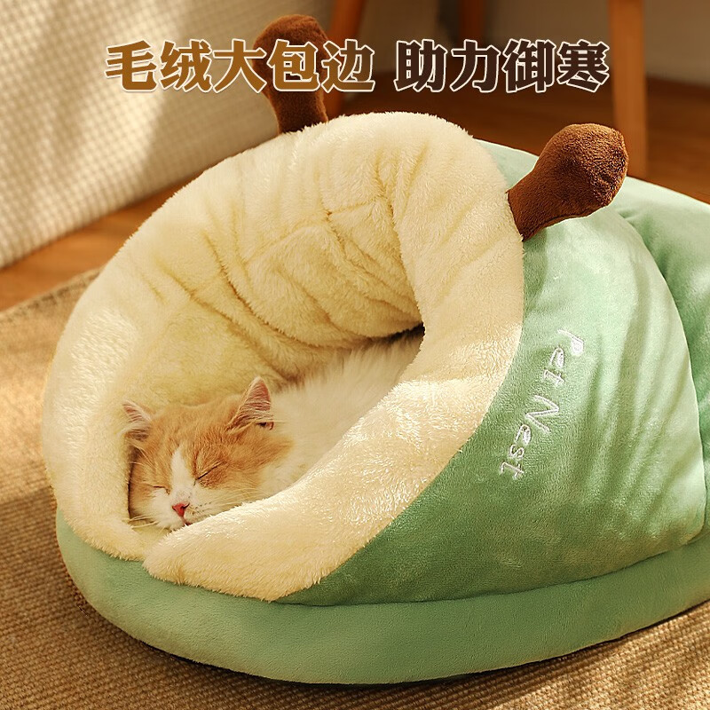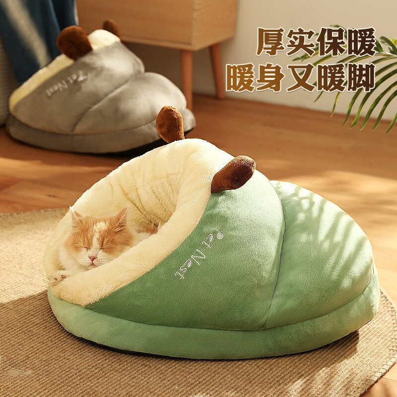 Kimpets拖鞋猫窝冬季保暖半封闭式猫床猫屋小猫咪冬天睡觉用狗窝宠物用品 牛油果绿 M【50*35*30cm适合10斤内宠物】