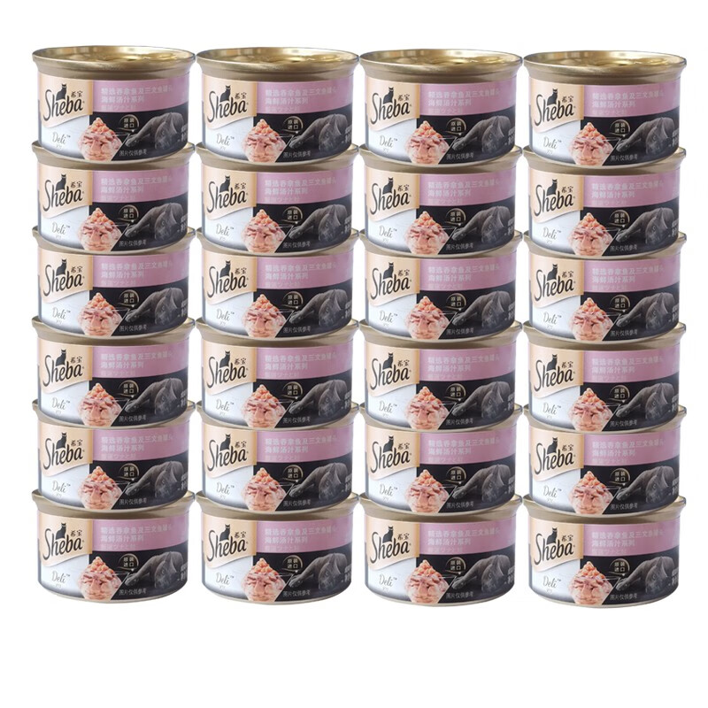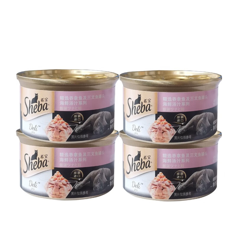 希宝(Sheba)SHEBA希宝猫罐头 进口猫咪罐头海鲜汤汁猫罐85g猫咪零食猫湿粮 吞拿鱼及三文鱼85g*24罐