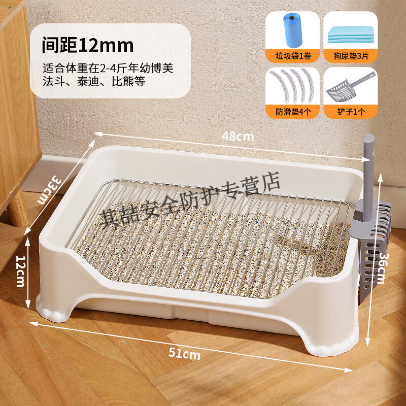 邦可臣狗狗拉屎神器狗狗厕所中小型犬专用尿盆防踩屎不锈钢狗砂盆小狗大 奶油白12mm【2-4斤】铲子