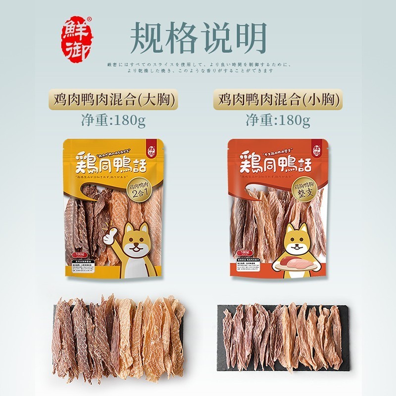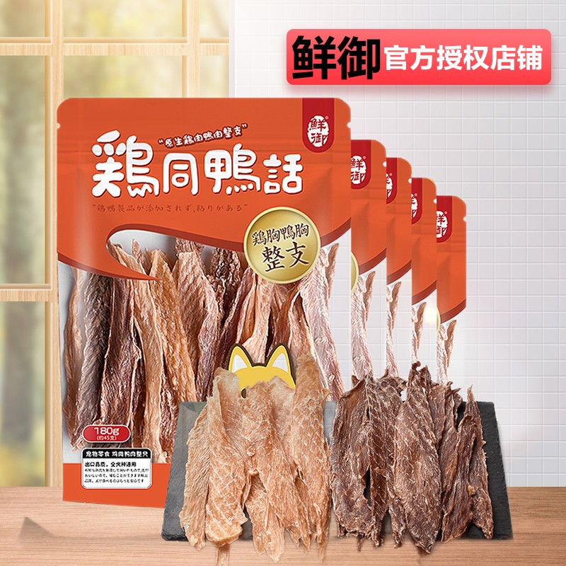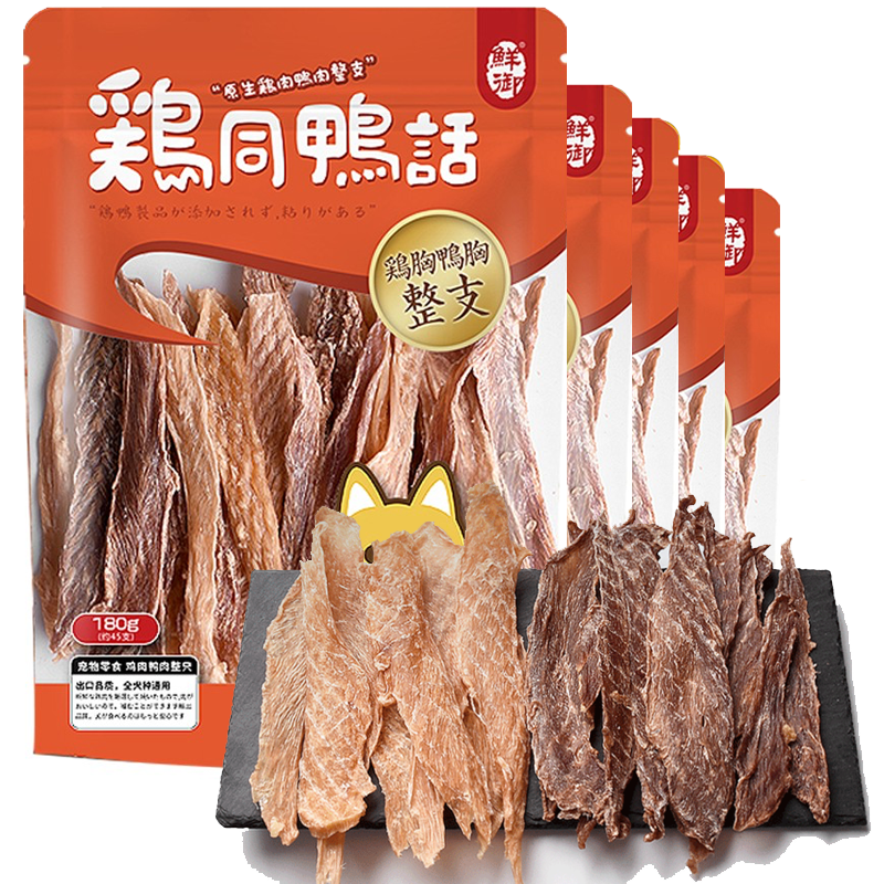 鲜御 狗狗零食 鸡胸肉干鸭肉干 磨牙洁齿训练奖励零食 金毛泰迪成幼犬狗狗通用宠物零食 【囤货装】180g*5包(鸡鸭混合小胸肉)